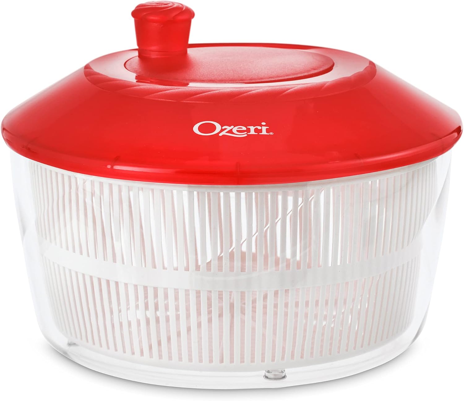 Available in three colors, the Italian made Ozeri Fresca Salad Spinner and Serving Bowl combines simplicity and ease-of-use with exceptional performance. The Ozeri Fresca Salad Spinner features a large 4.4 qt / 4.2 L colander and bowl made entirely of food-safe and BPA-free materials that accommodates all your greens and herbs. The outer bowl doubles as an elegant serving dish for any salad or any other dish. Developed under exacting standards to deliver frictionless perfection, the Fresca Salad Spinner delivers spin action with minimal effort and without disruptive noise. Designed for lifetime use and dishwasher-safe, the Ozeri Fresca Salad Spinner is supremely easy to use and even easier to clean. Made in Italy.