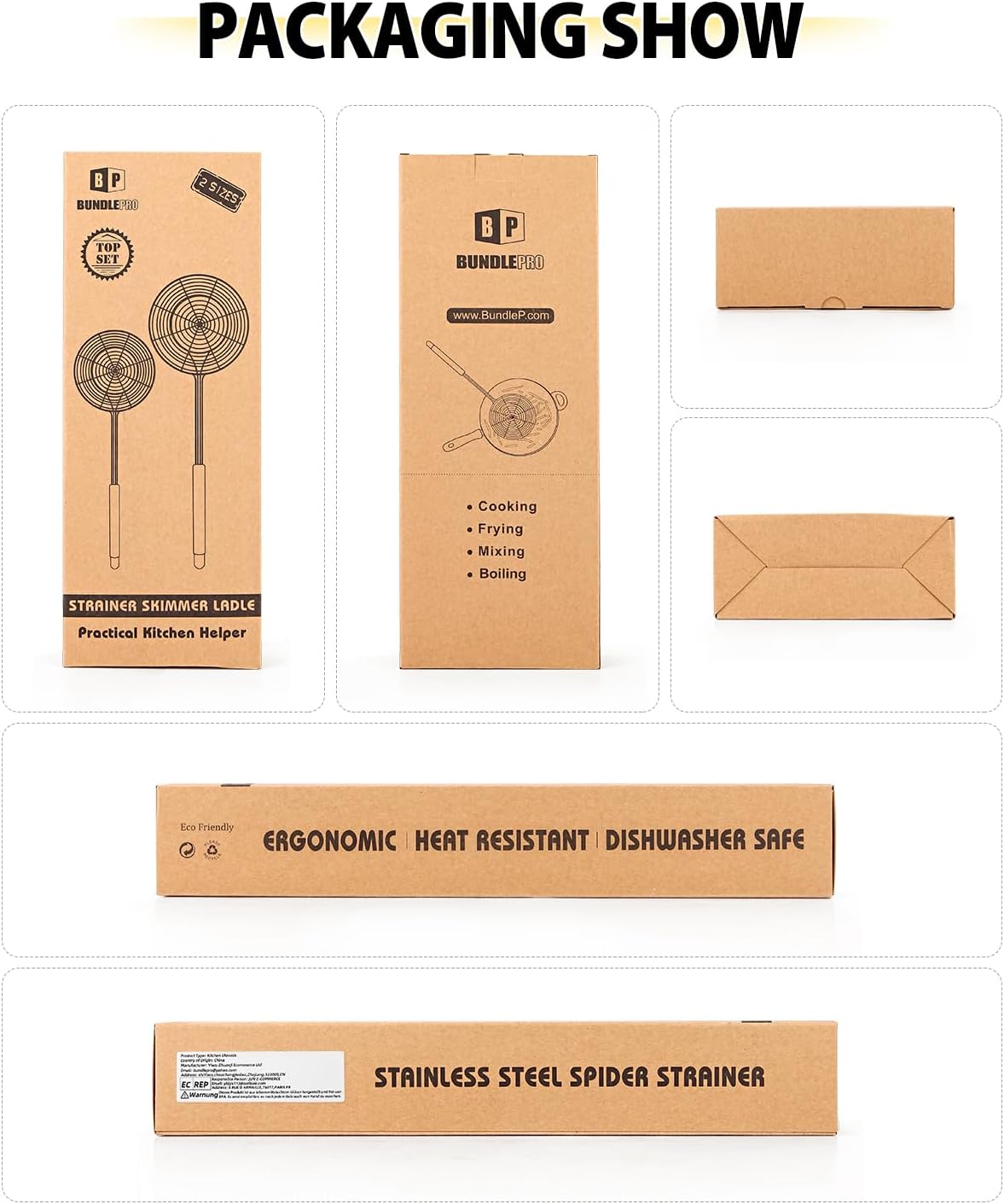 Practical and Reliable Kitchen Helper : Our food Strainers is designed with a wide basket for scooping and lifting food while draining away hot oil or boiling liquids; Food sits on the wire strainer to prevent splashes and mess