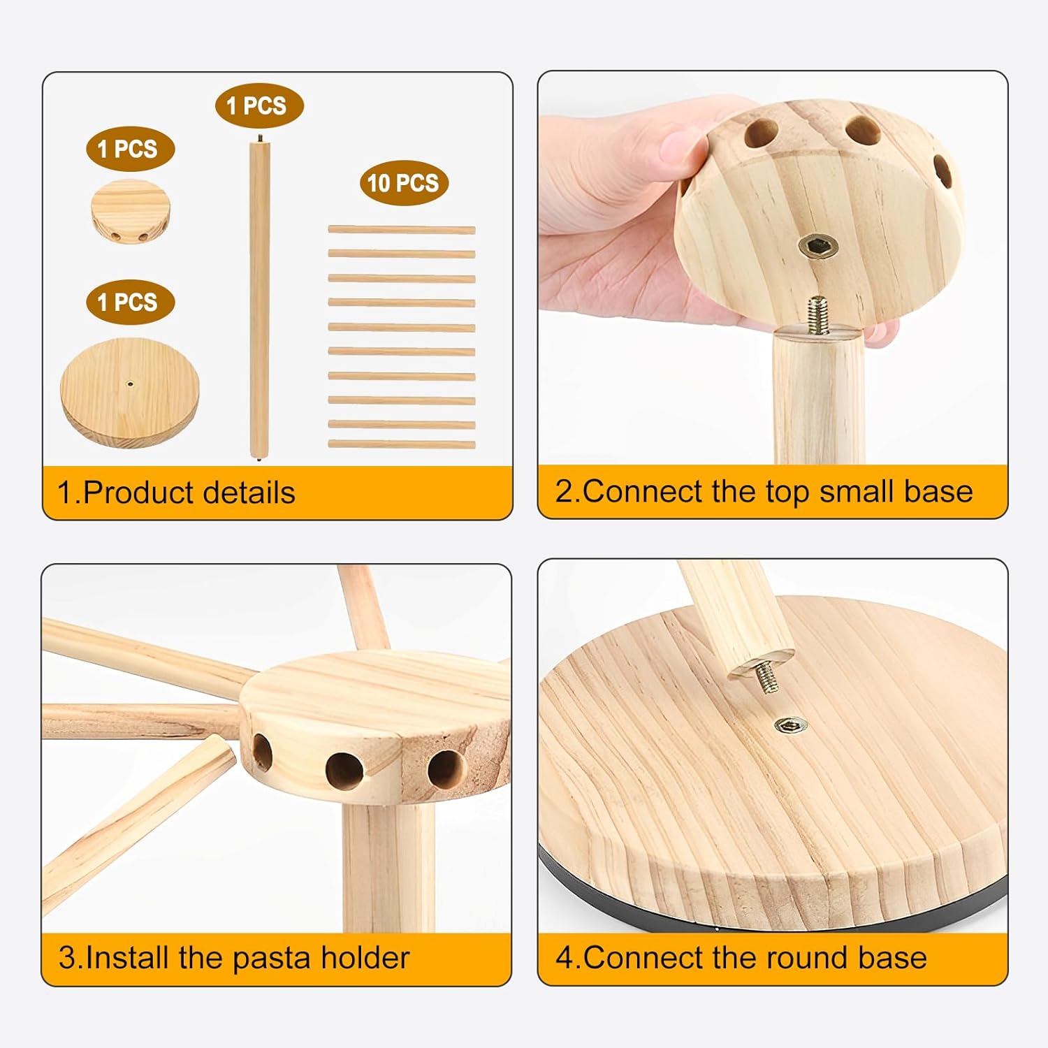Quick and Easy Assembly: Designed for simplicity, our this pasta holder spaghetti drying rack can be assembled without any tools, just attach the rods and base parts and store in a drawer after finished. It is the perfect solution for a tidy and organized kitchen, providing instant convenience