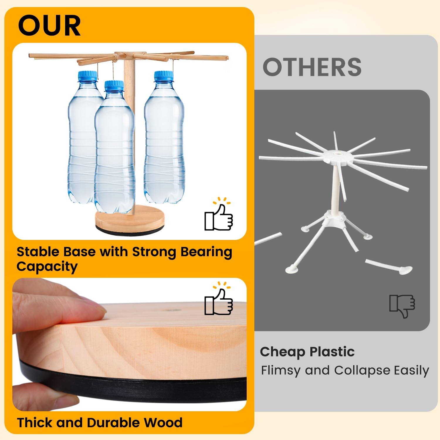 The innovative rotating base allows you to easily access your pasta from any angle. And the wood pasta hanger rack combined with the non-slip feature on the bottom, ensures the noodle rack remains stable and secure during use.