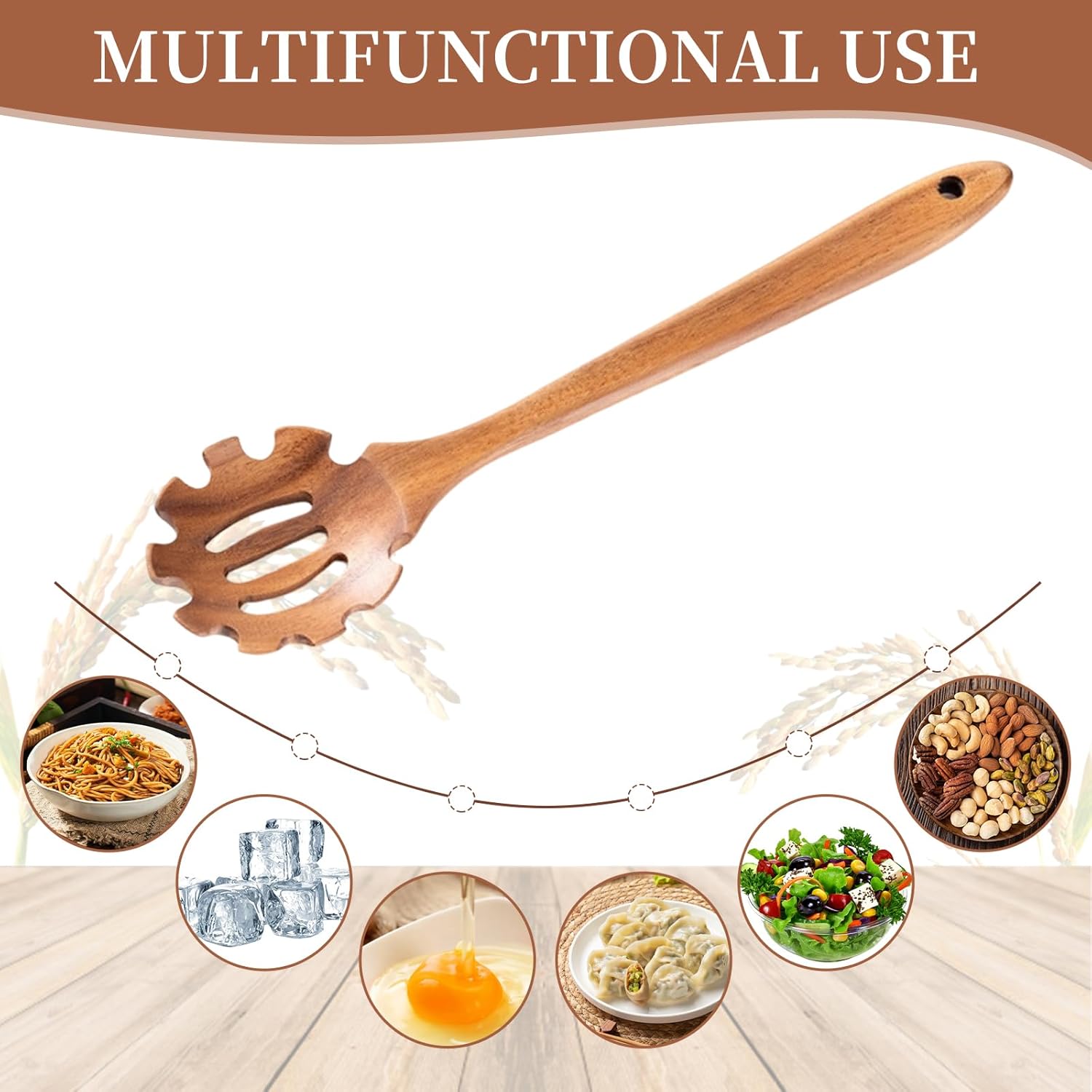 Quality material: This pasta spoon is made of high-quality small-leaf Acacia wood wood, delicate and beautiful, durable, lightweight and anti-deformation, will not damage the cooker or absorb the taste, is a safe and reliable choice for daily use
