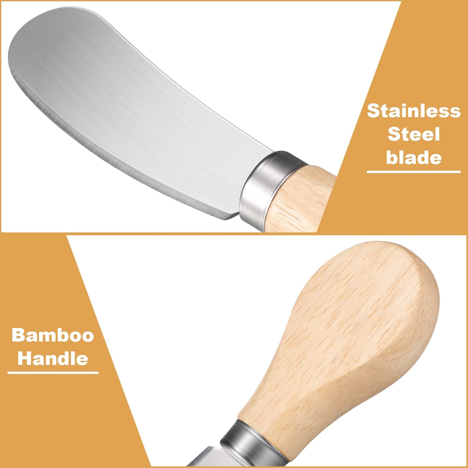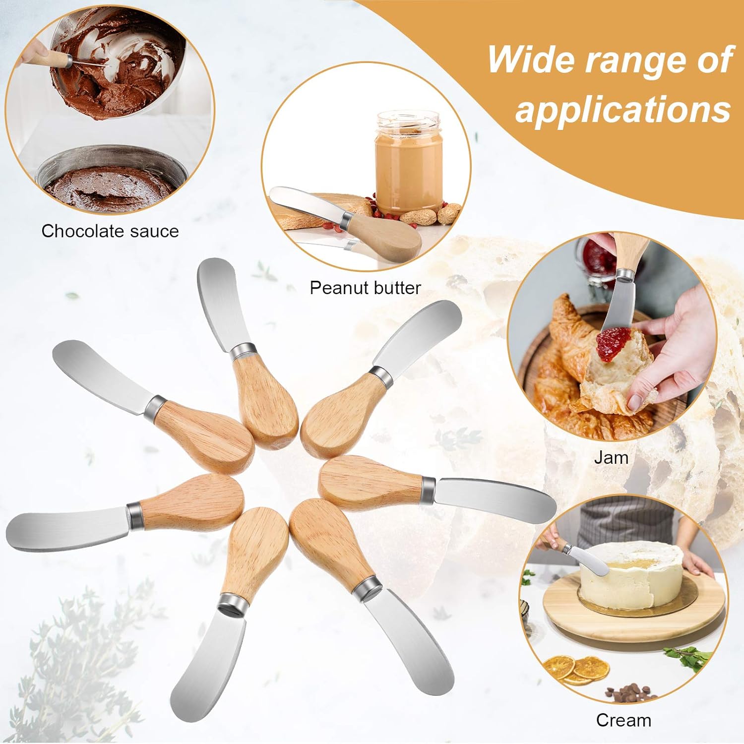 Stable material: the butter spreader is made of a combination of a stainless steel blade and a wooden handle; Stainless steel is durable, rustproof and peaked, while the wooden handle is easy to grip and control