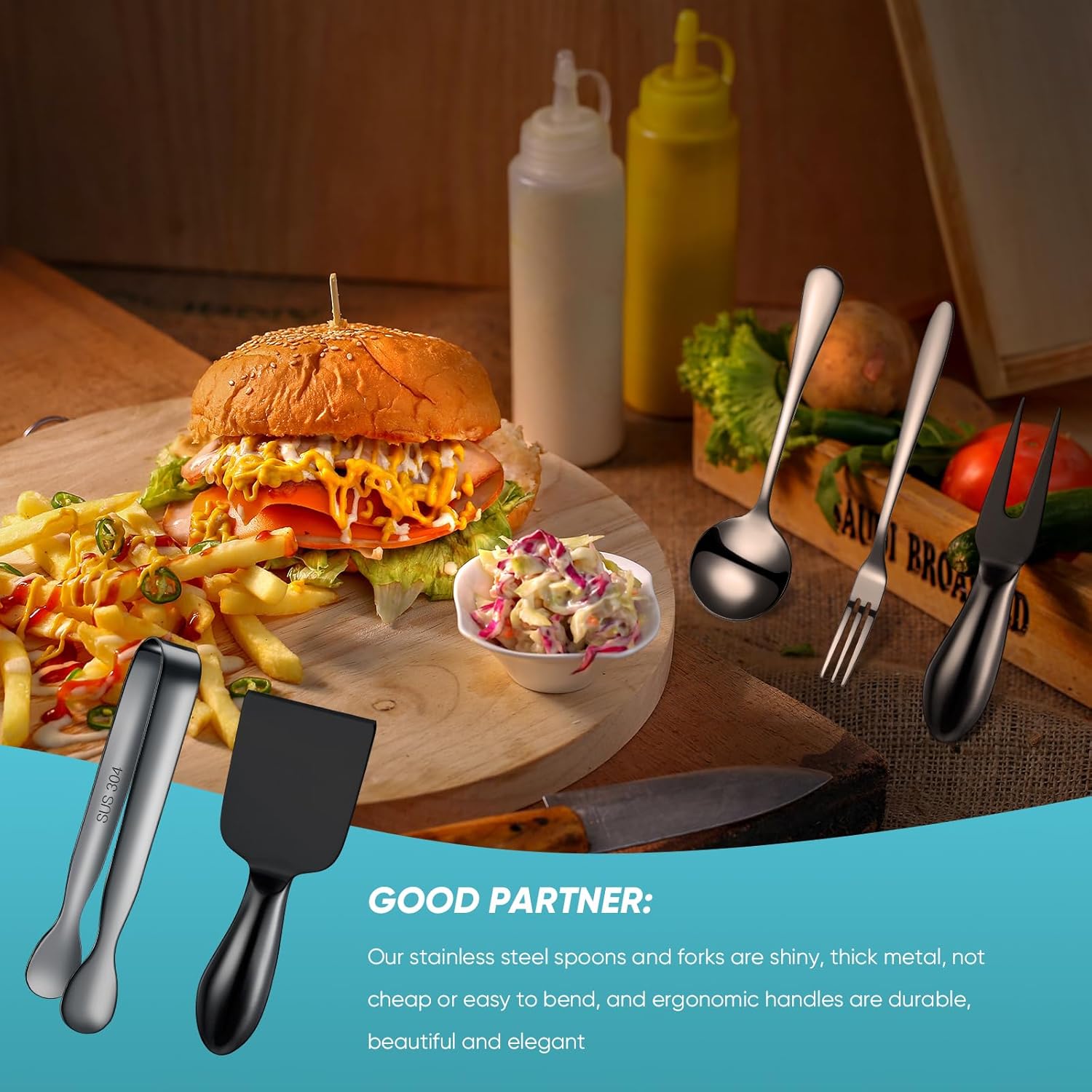 Wide applications: this spreader knife set is suitable for cheese, butter, or cream, and the spoons, forks, and tongs can be applied for coffee, desserts, yogurt, ice cream, appetizers, sauces, condiments, sugar, and so on, multipurpose kitchen tool for you