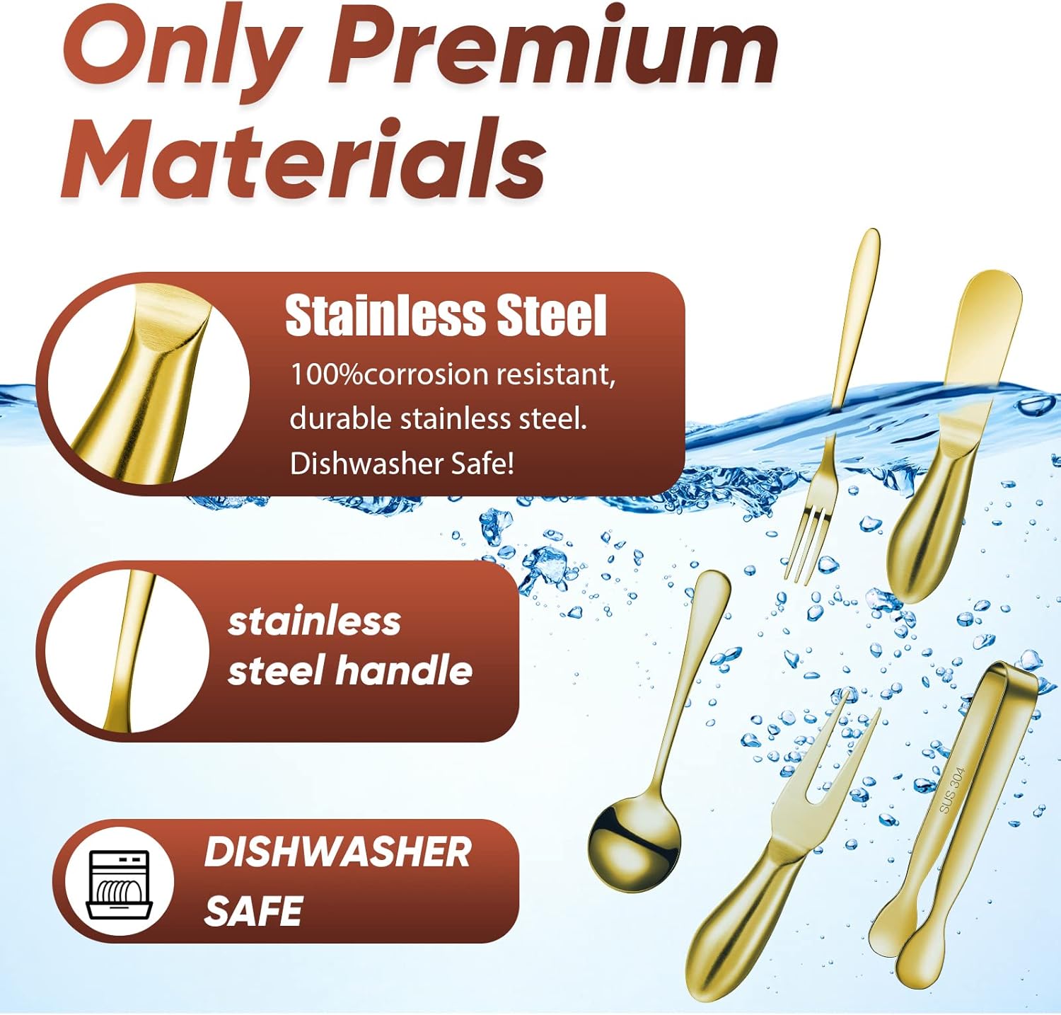 Wide applications: this spreader knife set is suitable for cheese, butter, or cream, and the spoons, forks, and tongs can be applied for coffee, desserts, yogurt, ice cream, appetizers, sauces, condiments, sugar, and so on, multipurpose kitchen tool for you