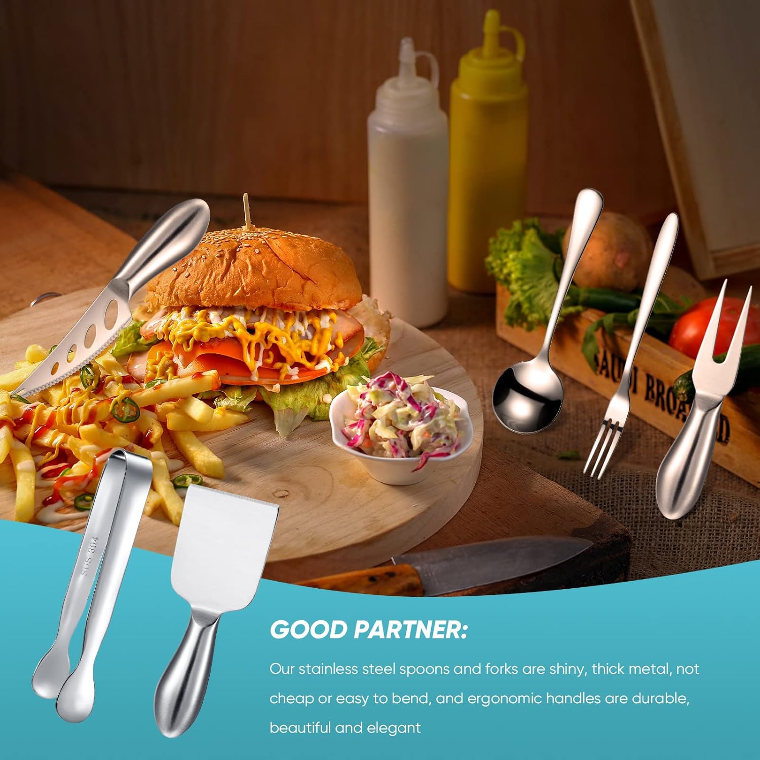 Wide applications: this spreader knife set is suitable for cheese, butter, or cream, and the spoons, forks, and tongs can be applied for coffee, desserts, yogurt, ice cream, appetizers, sauces, condiments, sugar, and so on, multipurpose kitchen tool for you