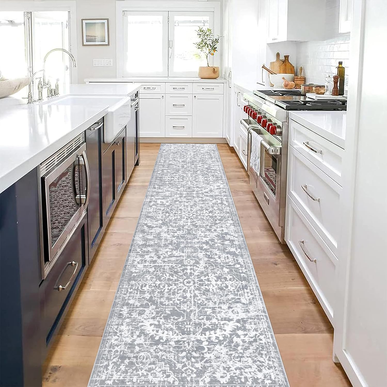 Non Slip Kitchen Runner Rug: Made of upgraded TPR non-skid backing, the farmhouse hallway carpet runner stays in place even with heavy foot traffic. No more worrying about slipping or tripping on your carpet again