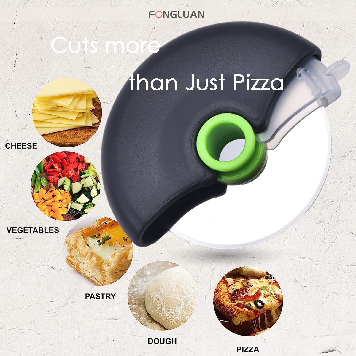 SET INCLUDES – 2-piece Stainless Steel Pizza Cutter Wheel with Protective Blade Cover.