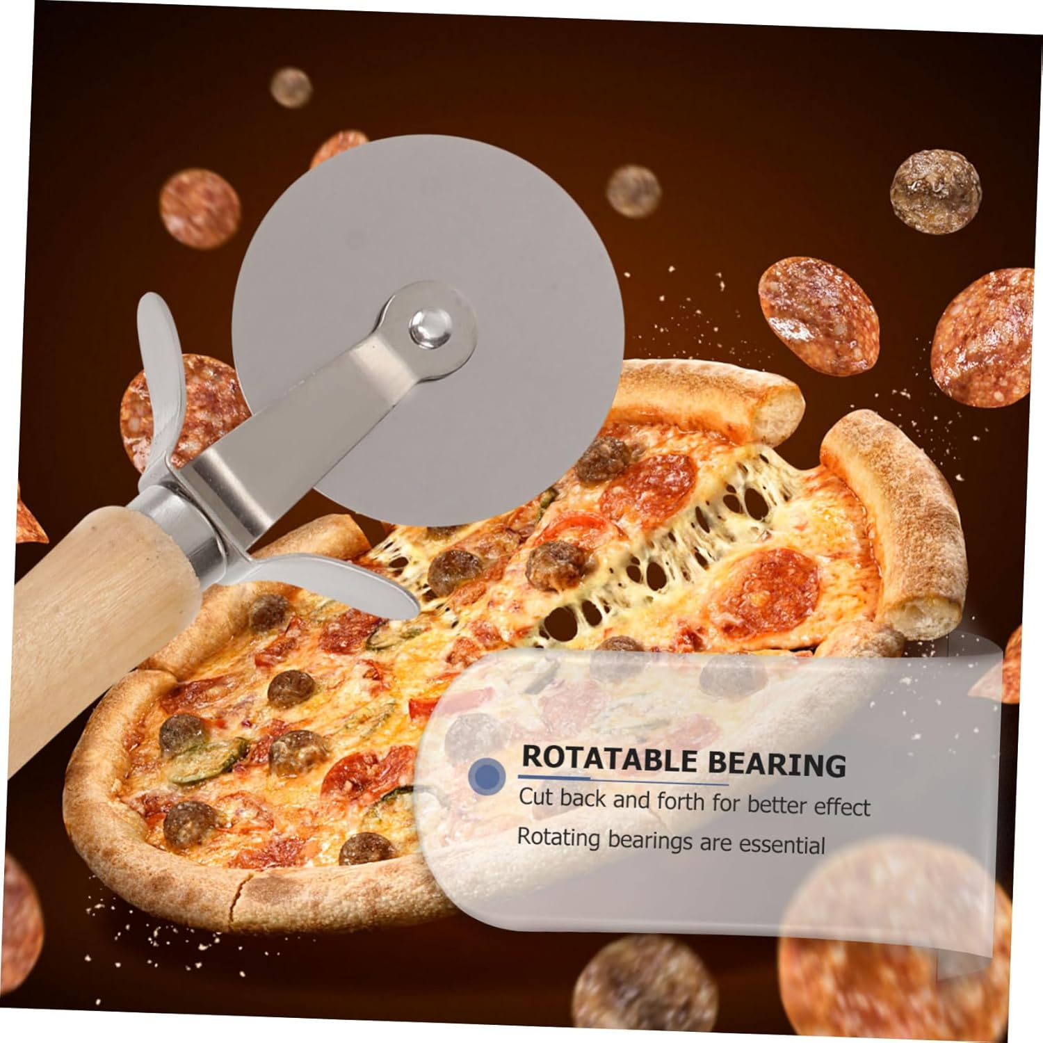 Kitchen pizza cutter:wheel spining for smooth and accurate cutting, looking pizza tool,wooden handle pizza cutter