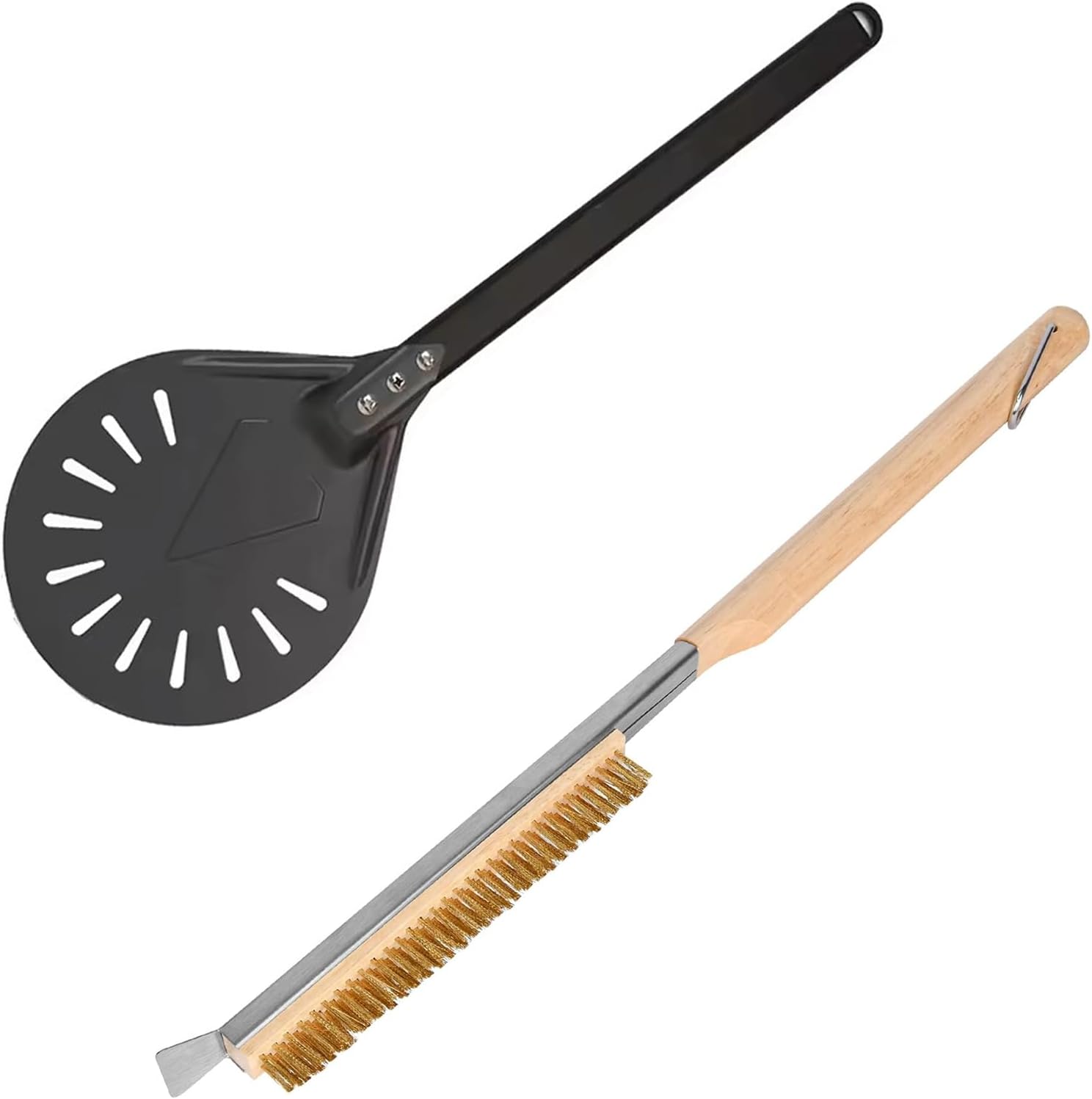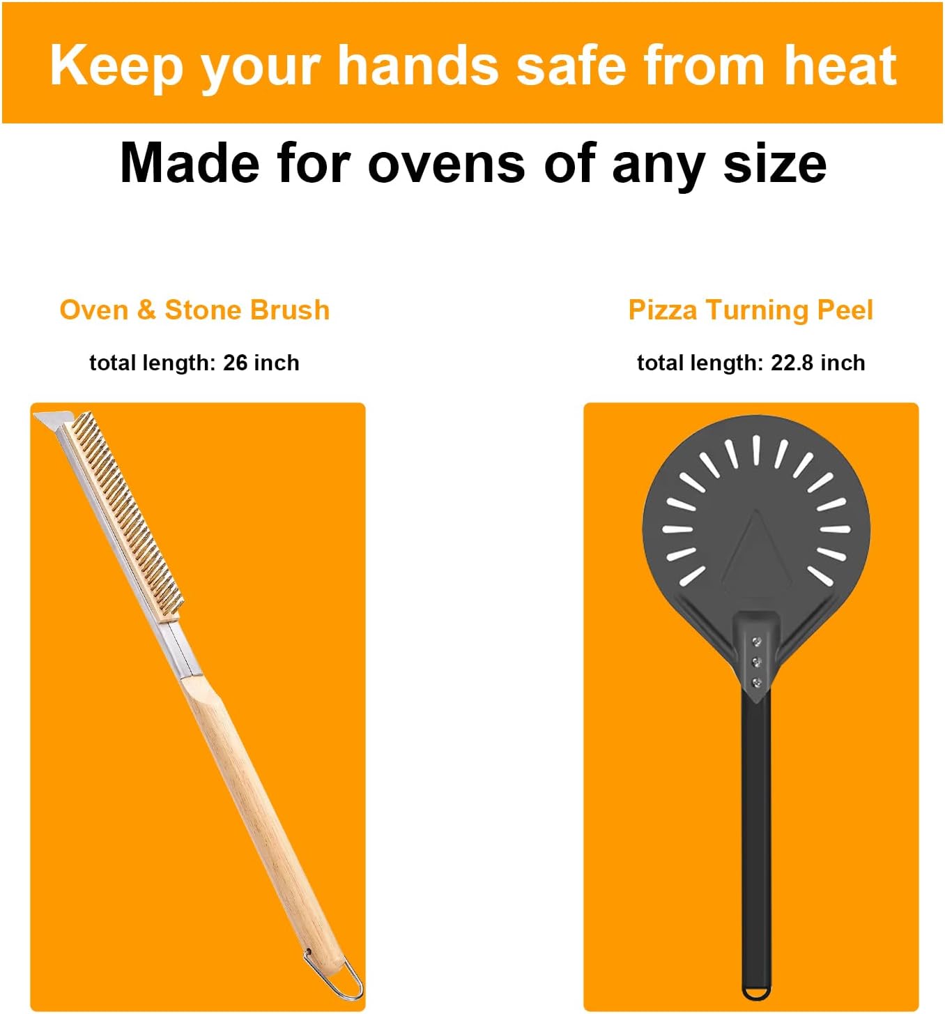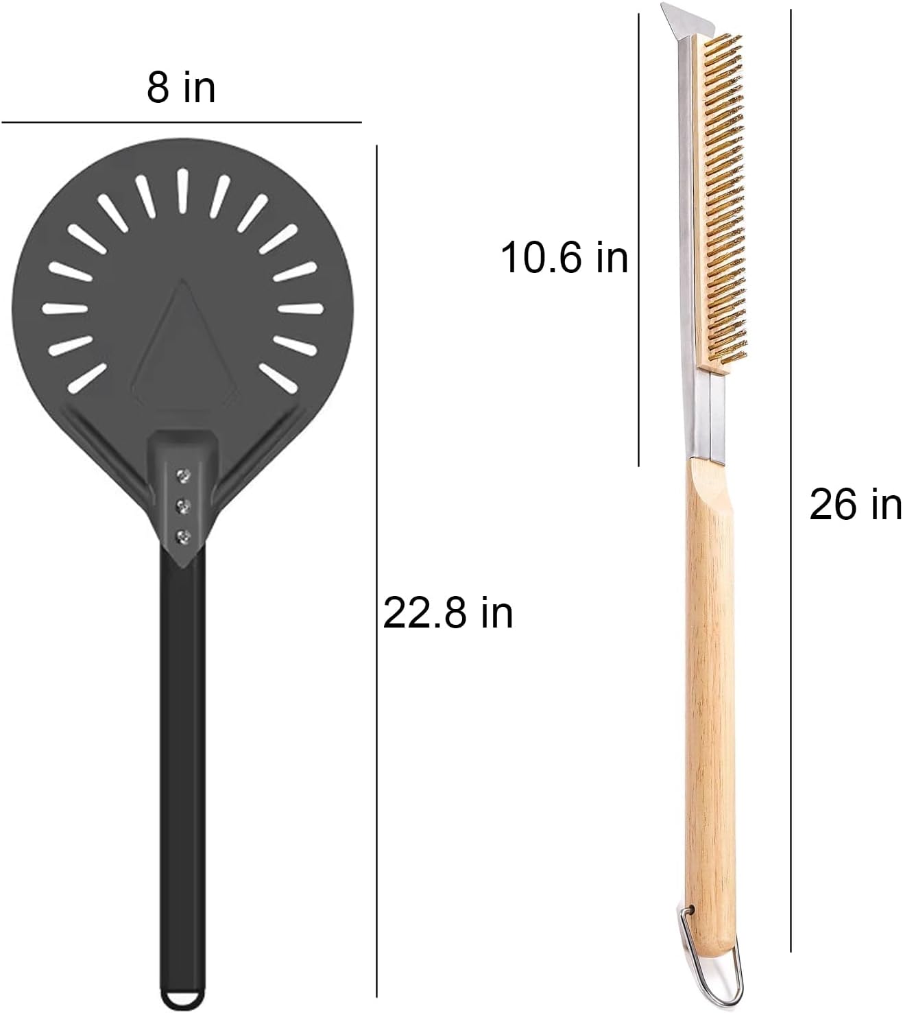 Size – Pizza oven turning peel is 8 inches in width and 22.8 inches in length, and the total length of the pizza oven cleaning brush is 26 inches, easy to carry and easy to use.