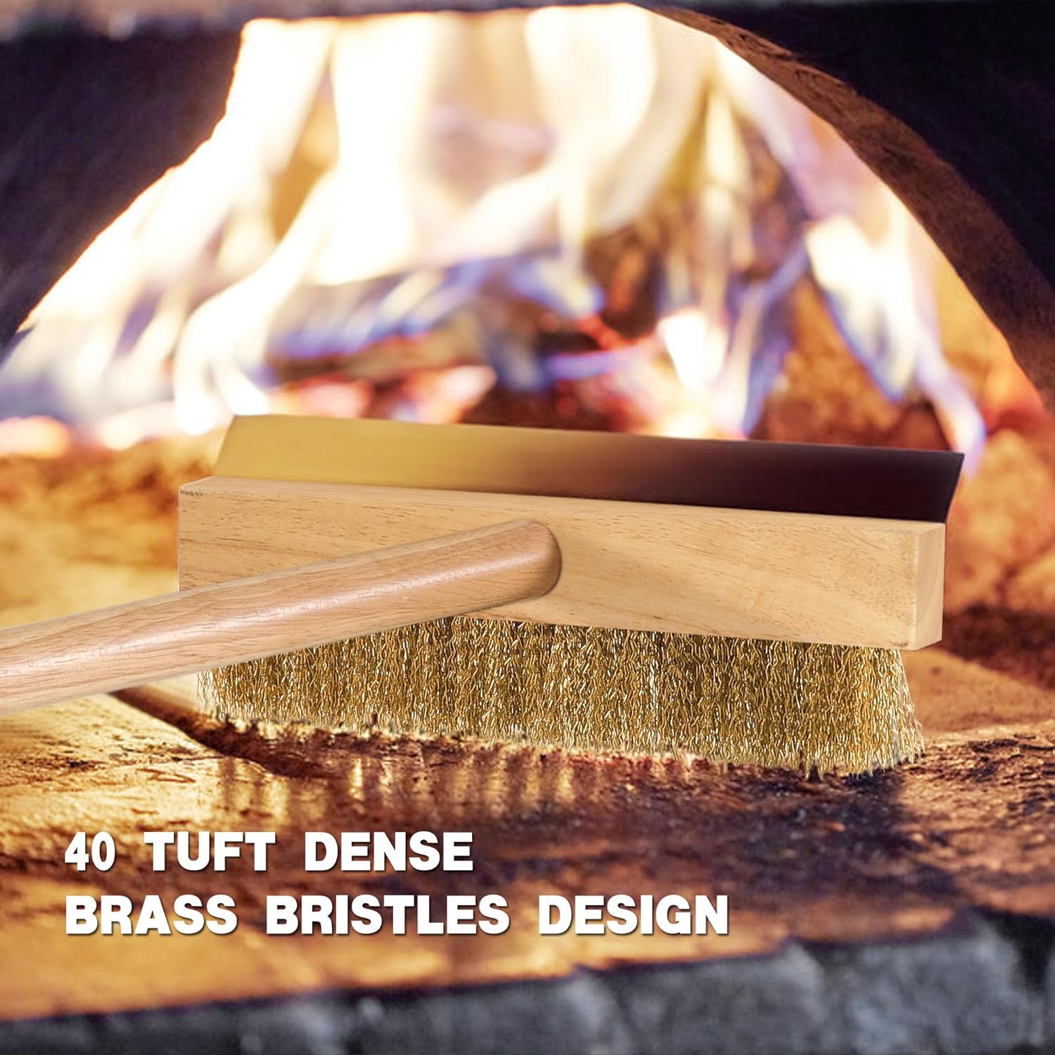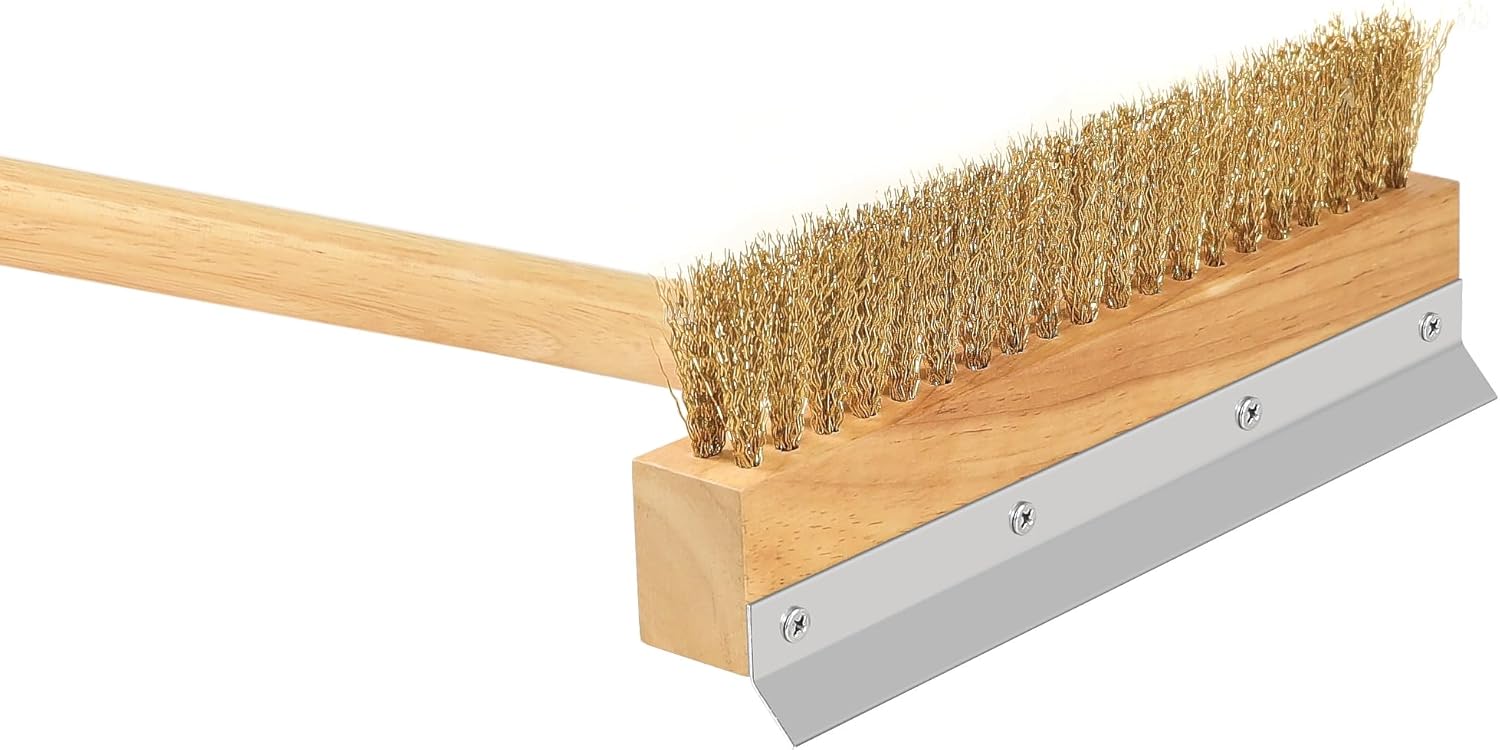 REMOVES RESIDUAL HEAVY GREASE: This pizza oven brush promotes quick and easy cleaning of your pizza oven. At the same time, a durable stainless steel scraper enables an aggressive clean while brass bristles remove residual burnt food, heavy grease, and rust.