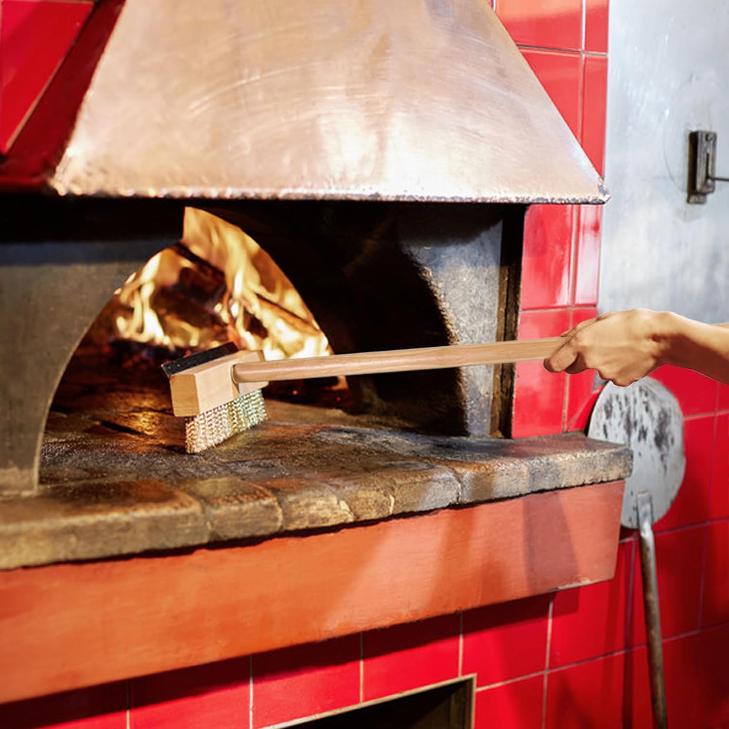 LONG HANDLE FOR HARD TO REACH AREAS: Ample 41″ wood fired Long handle ensures safety, reaching into the back of your oven for a thorough cleaning from a safe distance. The smooth wooden handle is securely screwed onto the brush for a reliable grip.