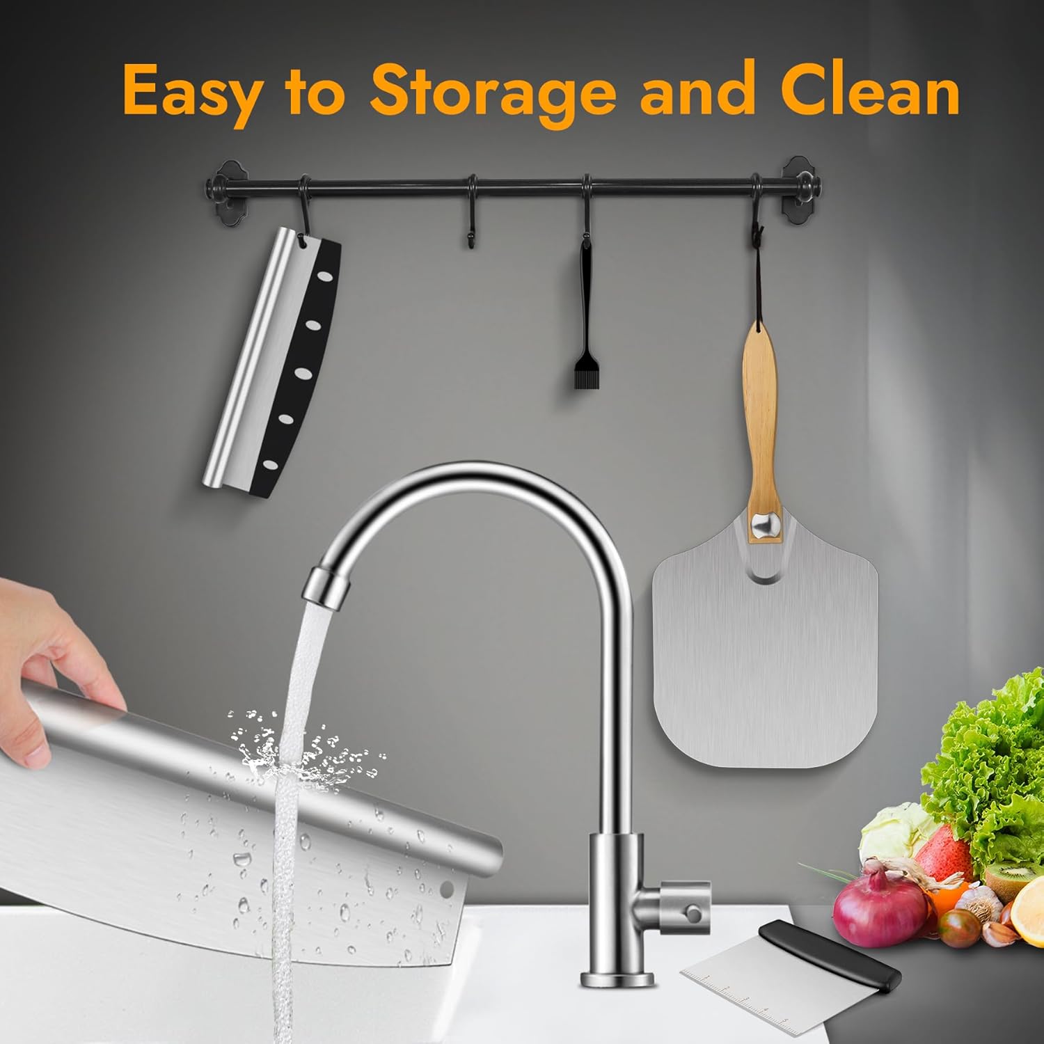 EASY TO CLEAN AND STORE: You can wash the pizza spatula paddle with a soft sponge or remove the wooden handle and wash it in the dishwasher together with the pizza cutter and scraper. Turn the screw to rotate the folding paddle handle for easy storage