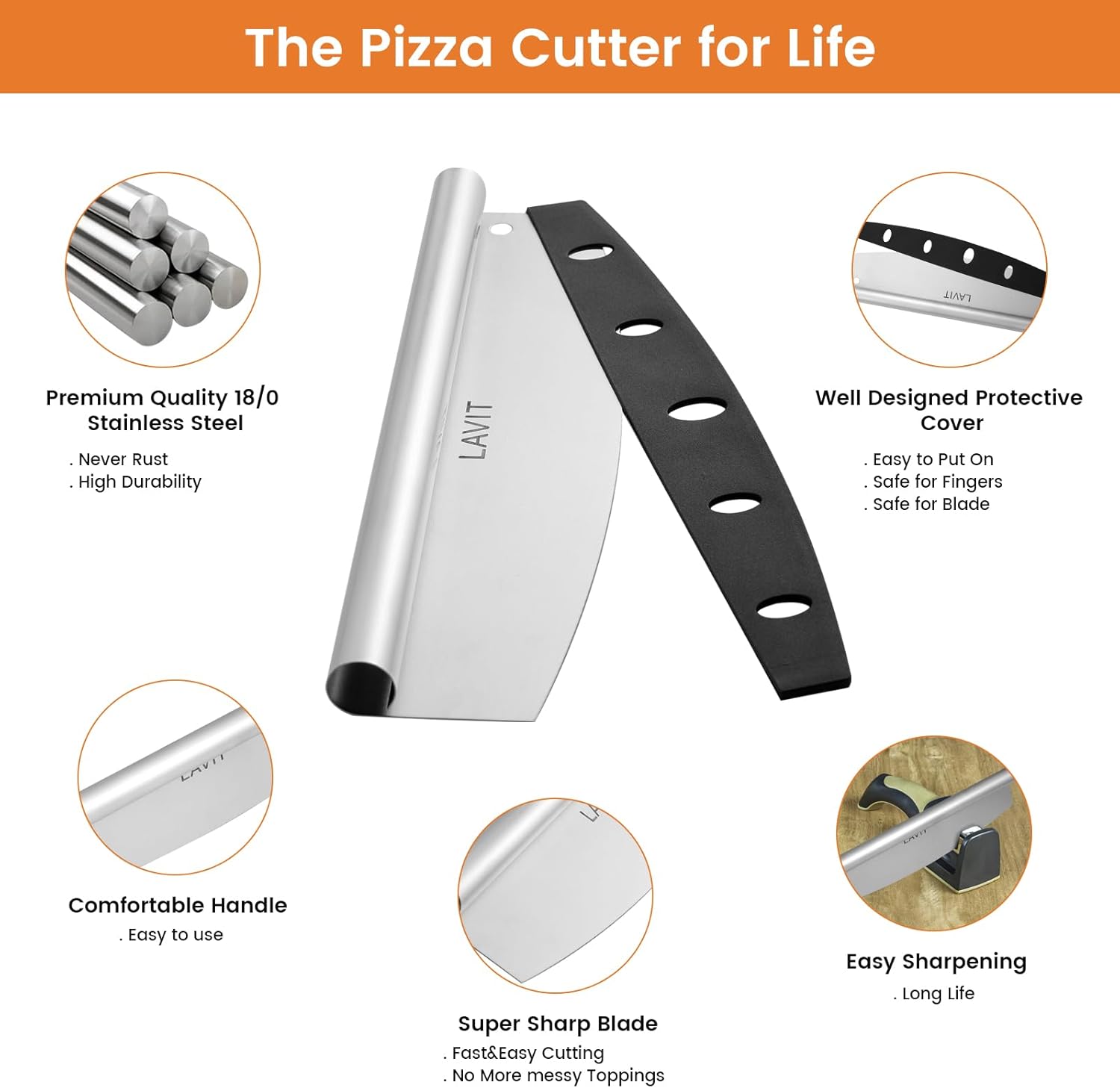 【Professional Pizza Cutter】: The Pizza Peel set includes essential pizza oven accessories like a Pizza Cutter with Cover—a large, curved knife known as the Pizza Cutter Rocker. Its sharp rocker blade allows you to cut perfect slices by rocking it back and forth across the pizza.