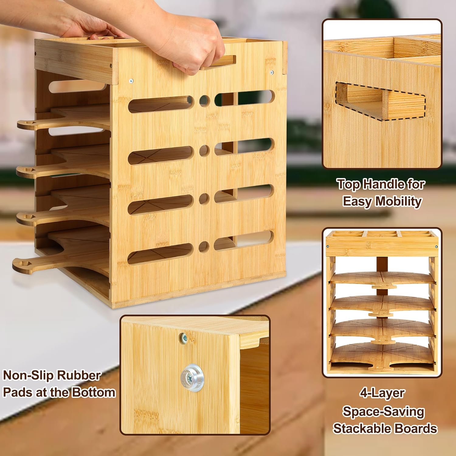 12 Inch Pizza Peel Rack: Includes 4 pieces non-stick pizza peels set, perfect for making 12 10 8 inch pizzas during gatherings and stack neatly to save space.The ergonomic extended handle ensures easy handling, and the grooves help you cut evenly sized slices