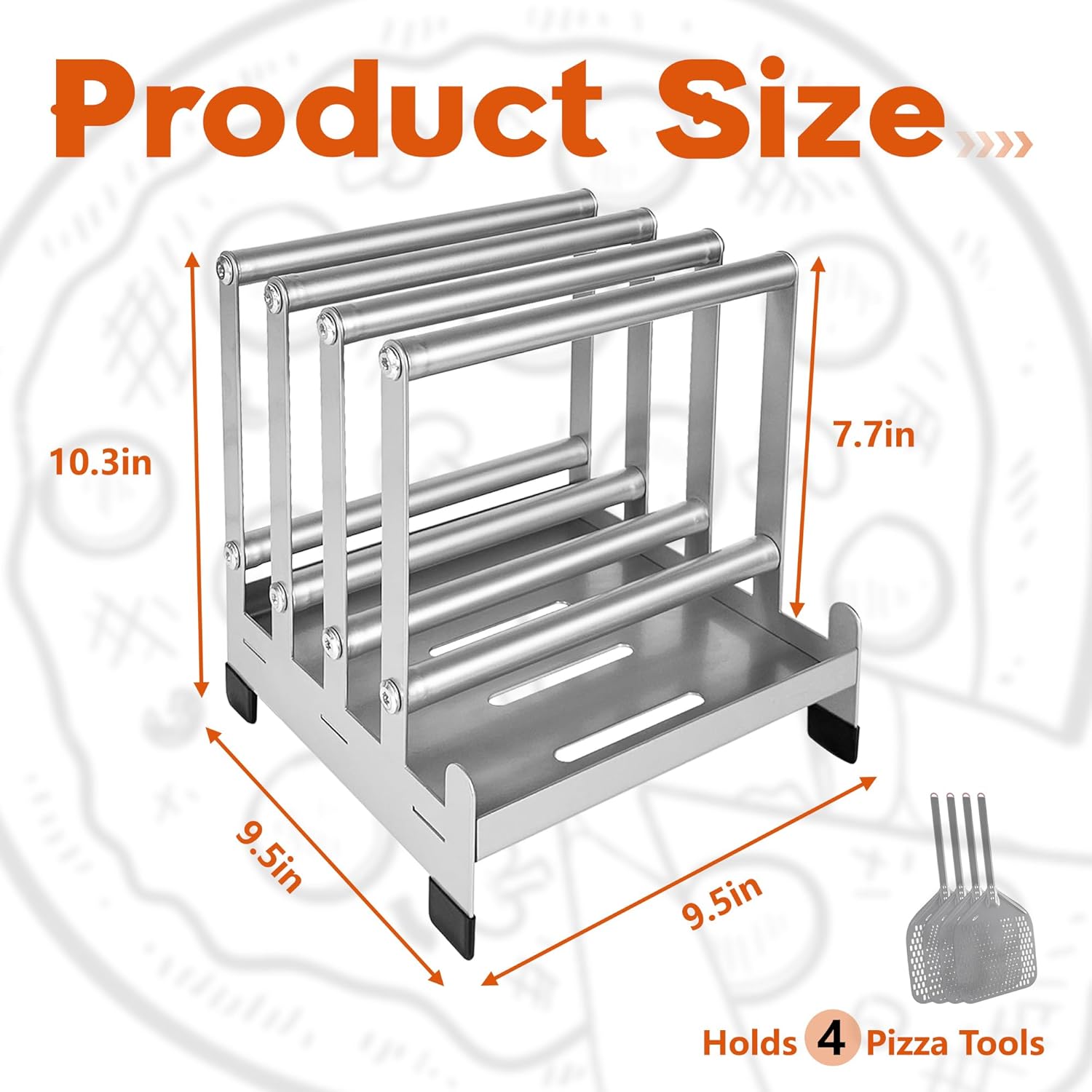 【Stable & Sturdy】Crafted from high-quality steel, our pizza peel rack features a robust and durable design. The solid base ensures stability, while integrated non-slip feet prevent movement, offering a secure storage solution.