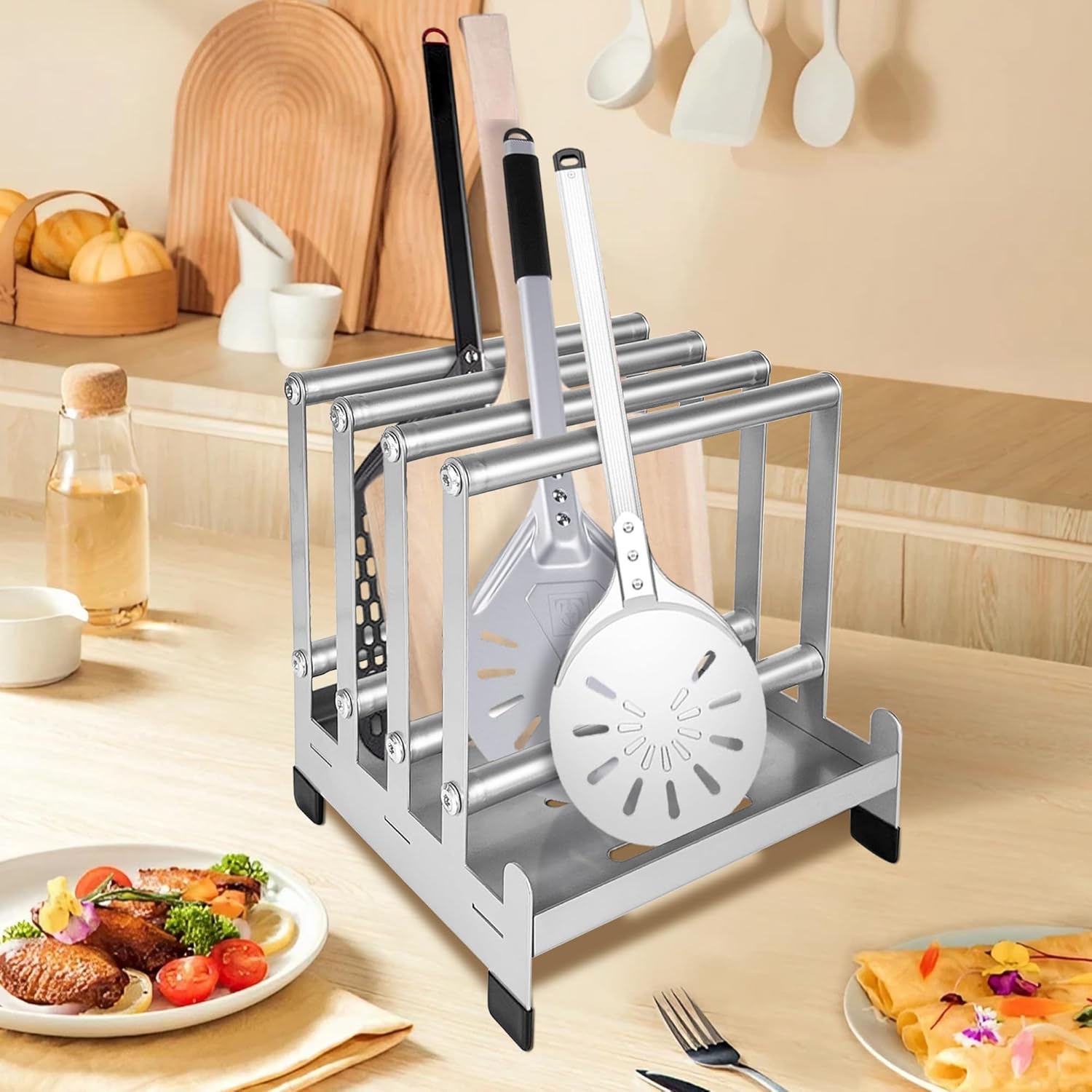 【Essential Tool】An indispensable addition to any kitchen, the pizza peel rack is the perfect assistant for pizza-making enthusiasts. It ensures that pizza peels are always within reach and ready for use, making pizza preparation experience smoother and more enjoyable.