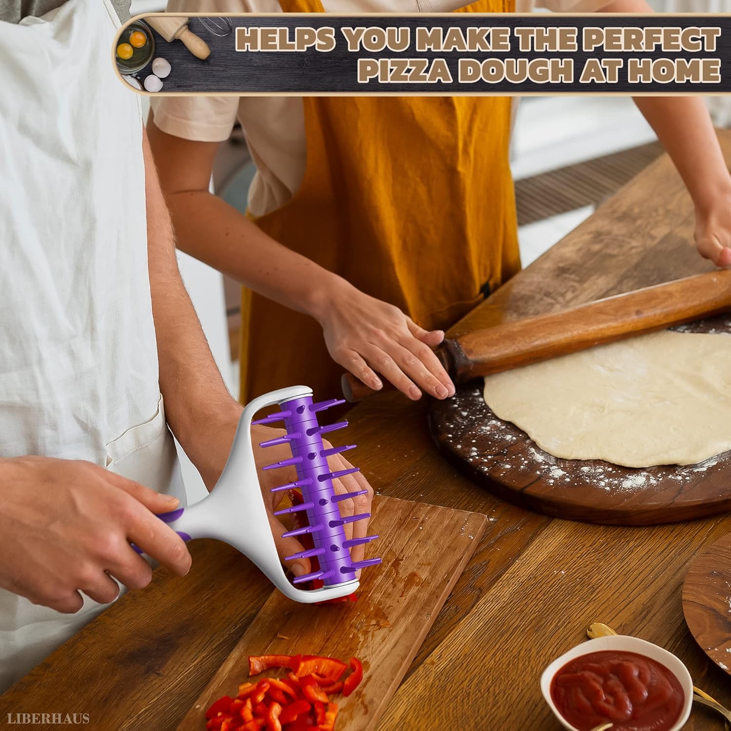 Easy to Use Pizza Dough Shaper : This cookie dough roller is easy to use and allow bakers to dock dough just by rolling over the spiked portion back and forth with firm pressure over dough. Anyone can use bread dough docker pizza making accessories easily