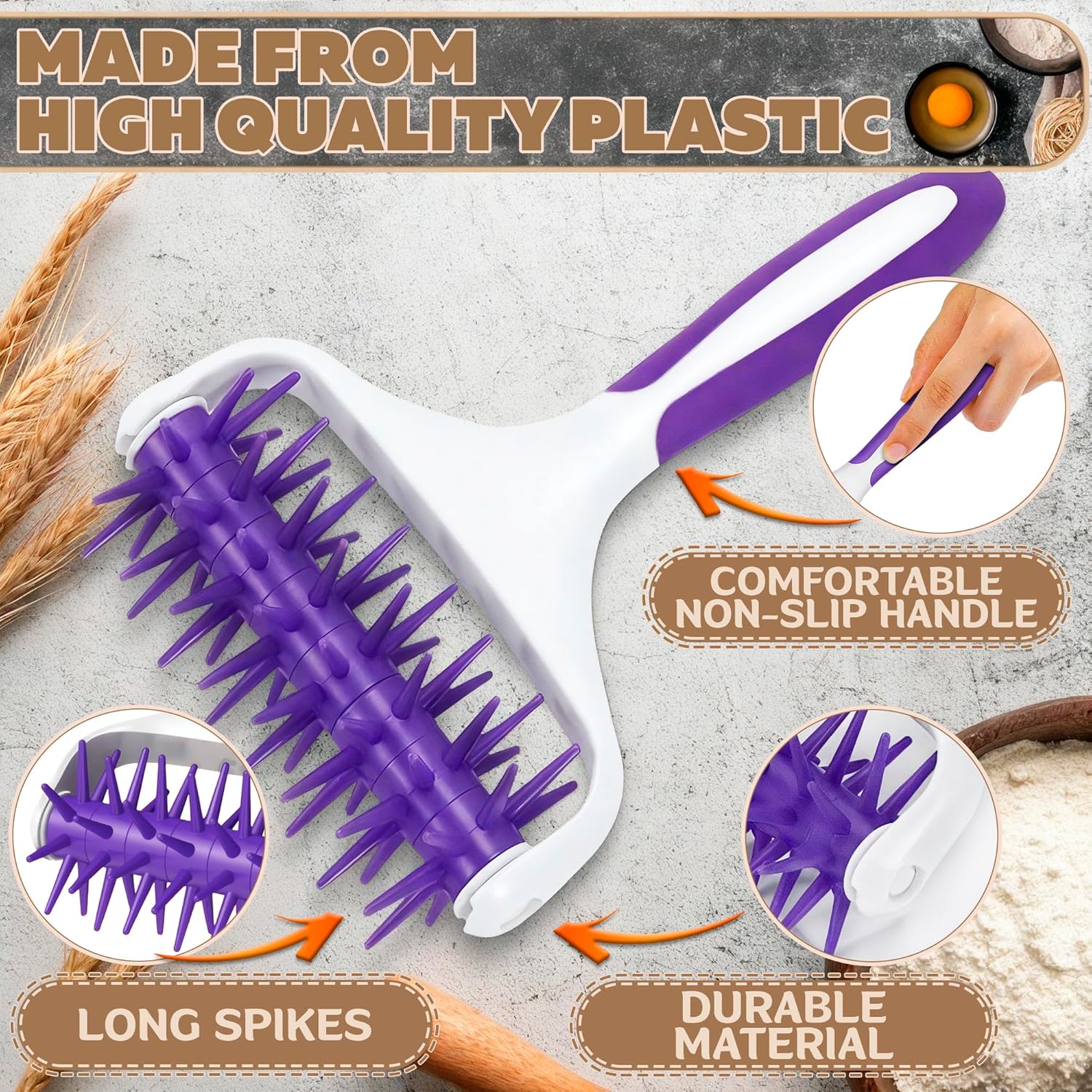 Size of Plastic Kitchen Roller for Dough with Spikes: This silicone bread dough docker has 5 inch wide roller and wide enough that takes only a couple swipes to make holes in entire pizza, so helps to minimize dough from rising