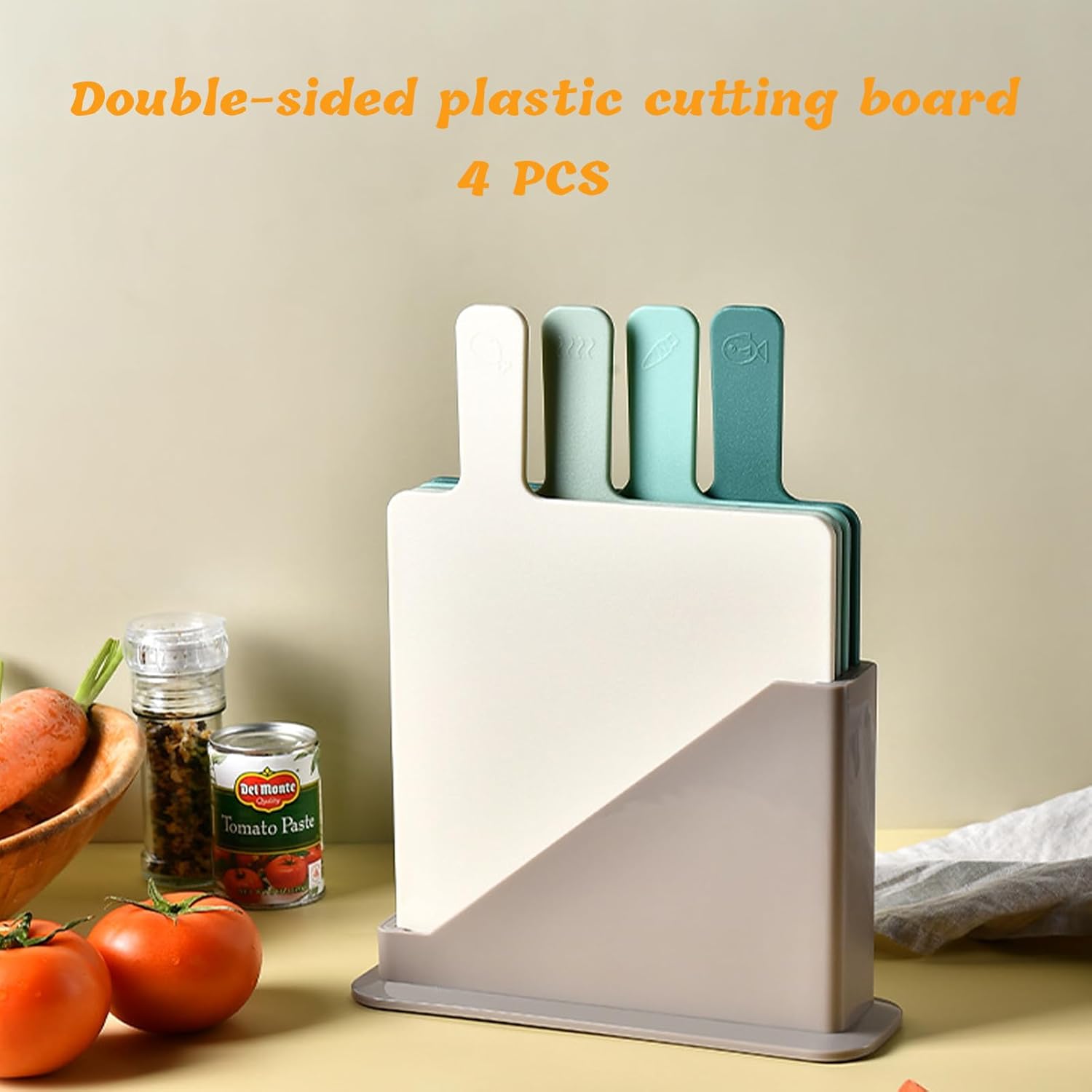 4-Piece Cutting Board Set: This set comprises 4 plastic cutting boards, each tailored to meet all your kitchen requirements—ideal for slicing vegetables, meats, and more. Keep your meal preparation efficient!