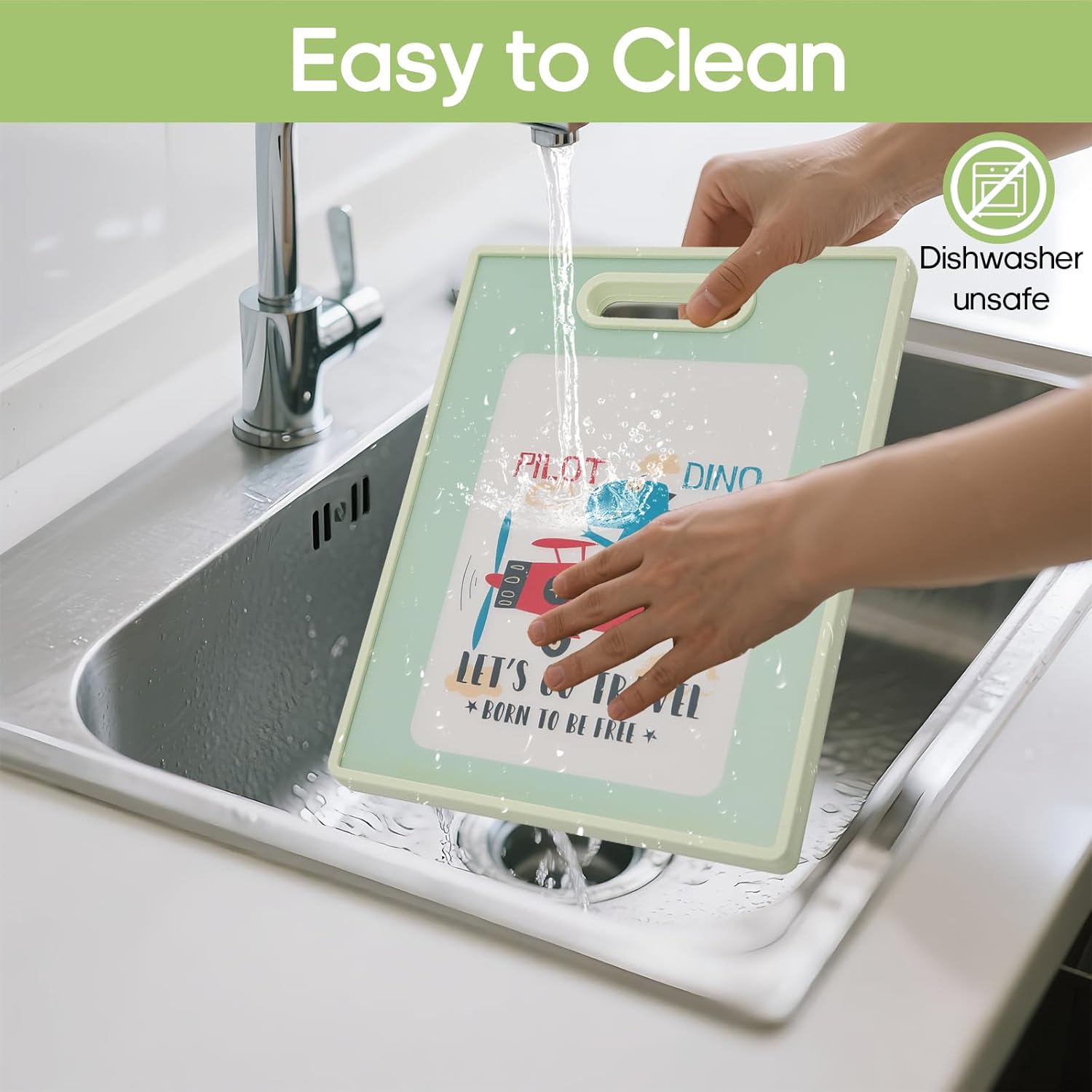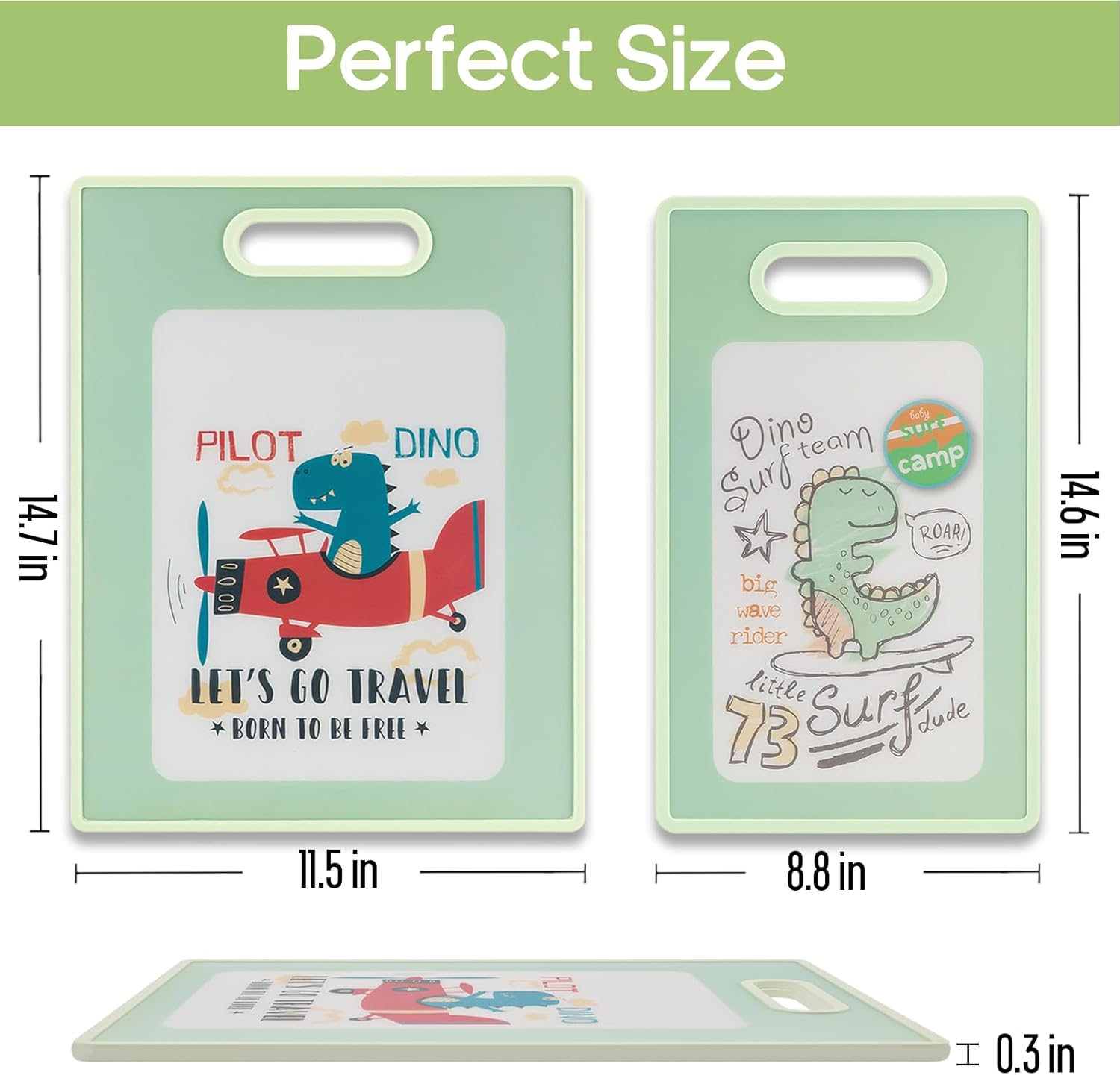 LIGHT UP YOUR KITCHEN WITH DINOSAURS: The 2-Piece Cutting Board Set features a vivid dinosaur design that makes meal prep a fun adventure! Perfect for home use, this versatile chopping board adds fun to cooking with a unique designs that catches the eye