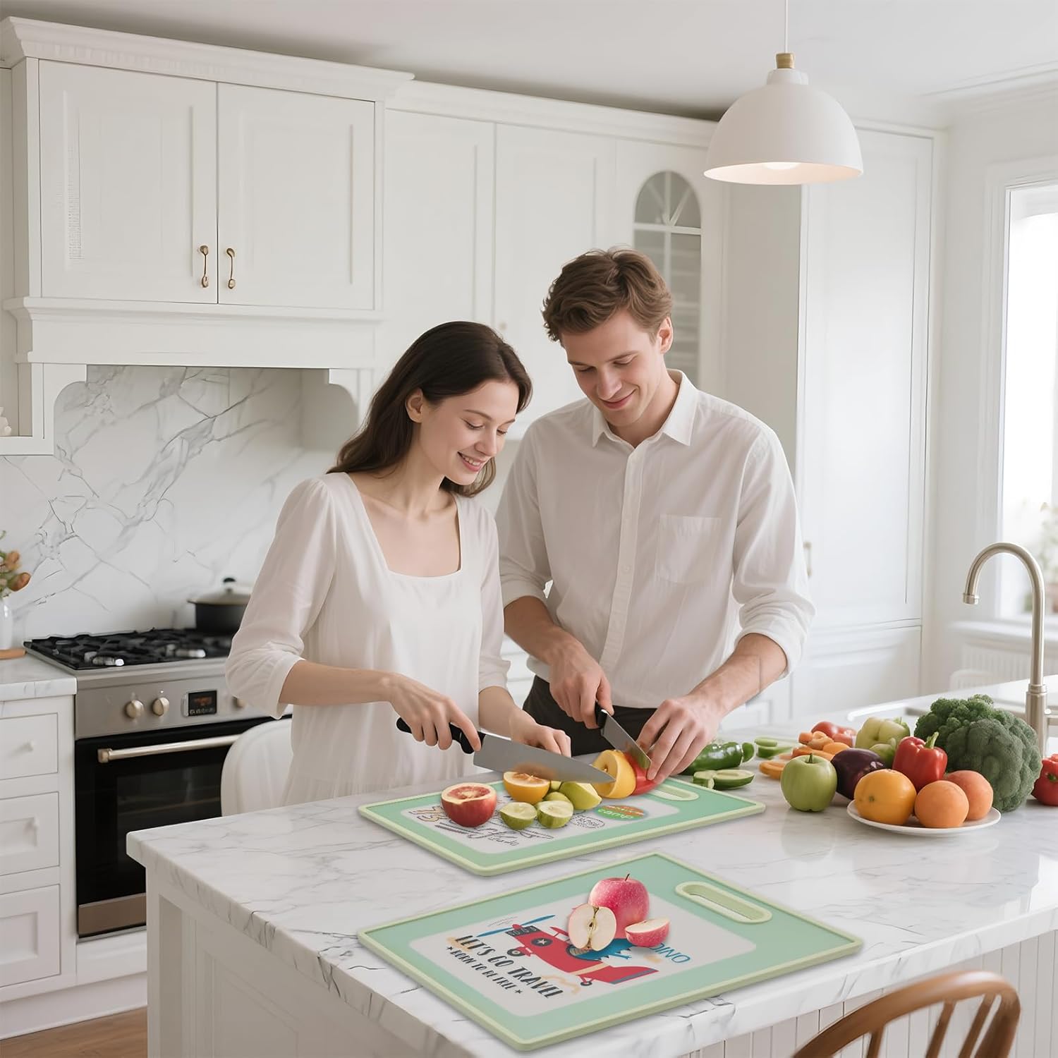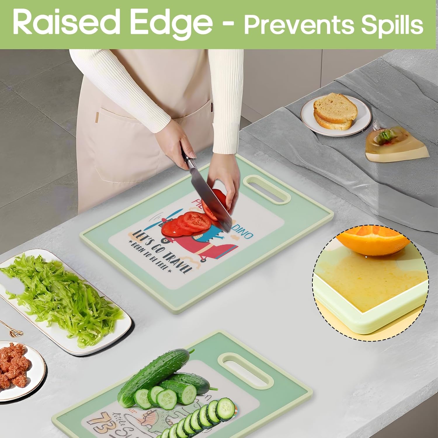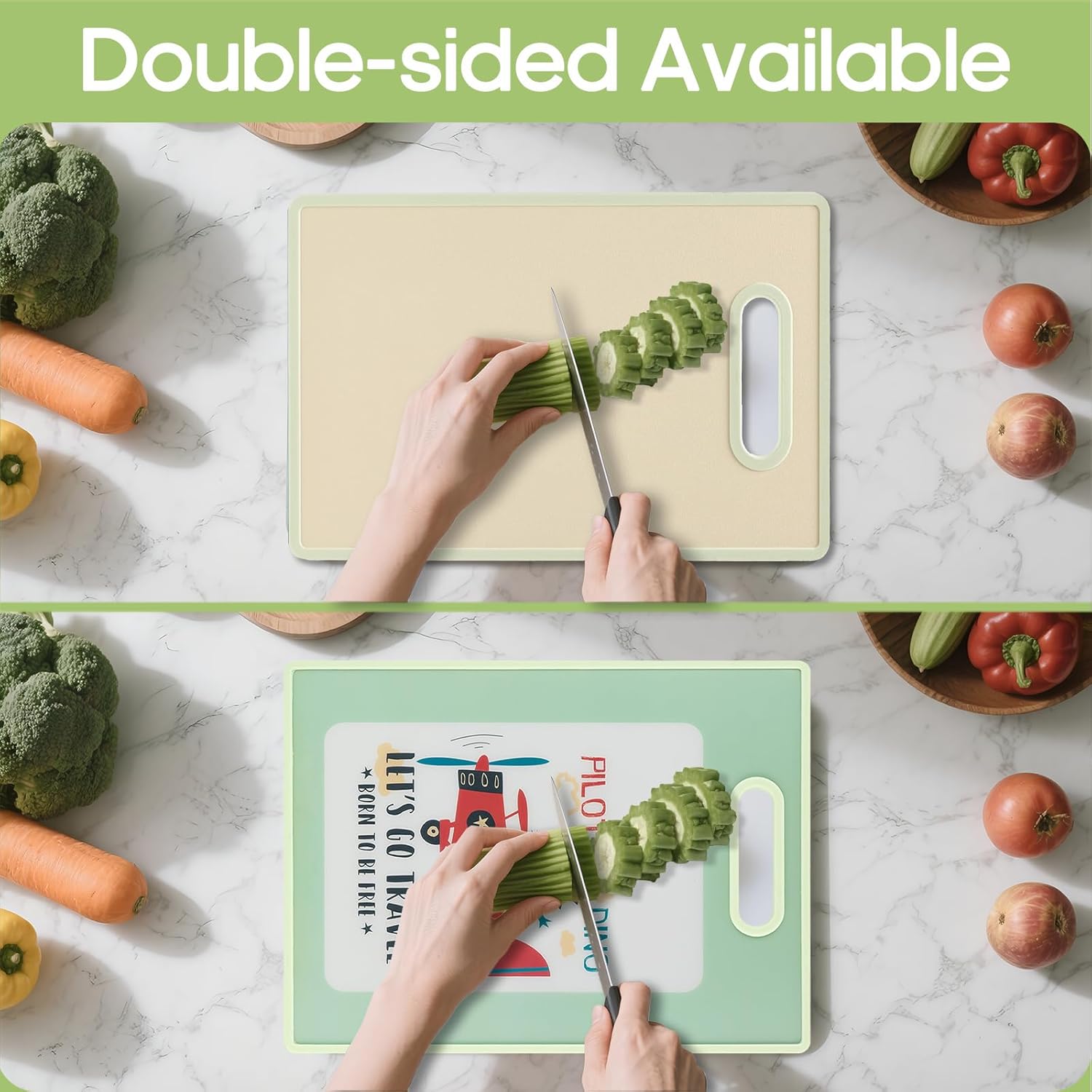 DOUBLE SIDED: Each board features dual sides—one for chopping veggies and fruits, the other for meats—maximizing versatility and practicality for various kitchen tasks