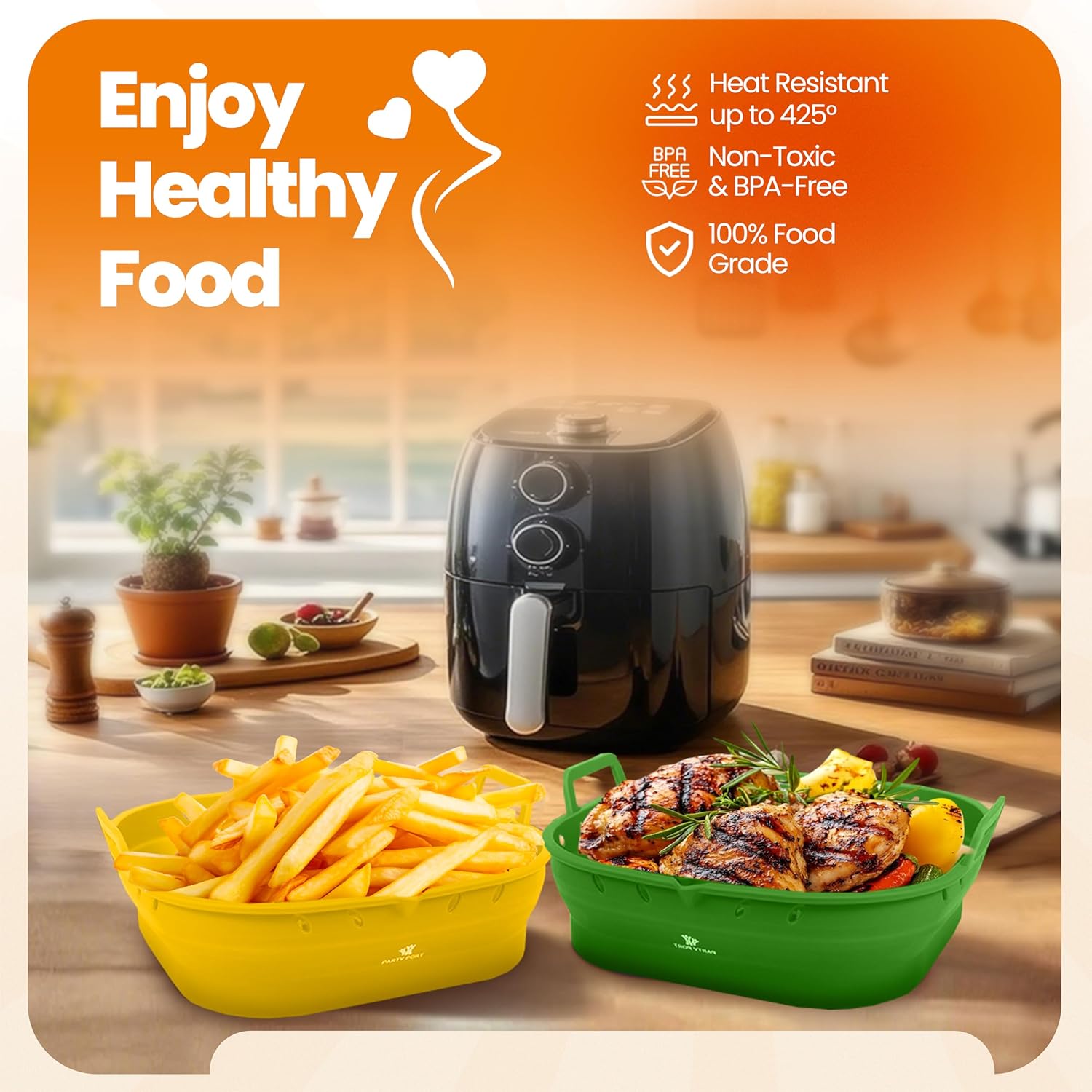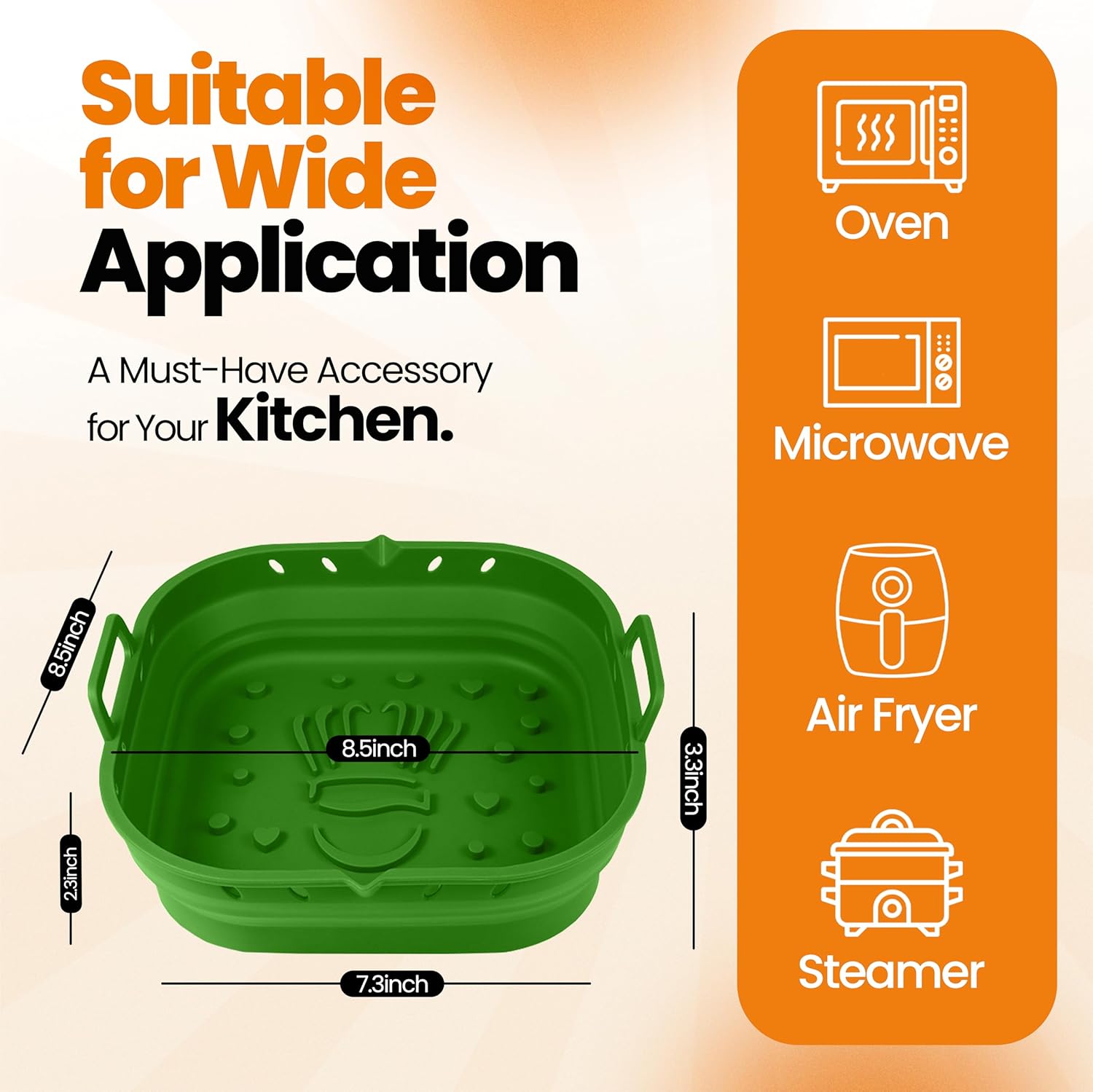 ✨ 100% FOOD-GRADE PLATINUM SILICONE: SAFE & DURABLE: Made from premium, non-toxic platinum silicone, this liner is thick (7.4oz), heat-resistant, and built to last. It won’t deform under high temperatures, making it safe for use in air fryers, ovens, microwaves, freezers, and steamers.