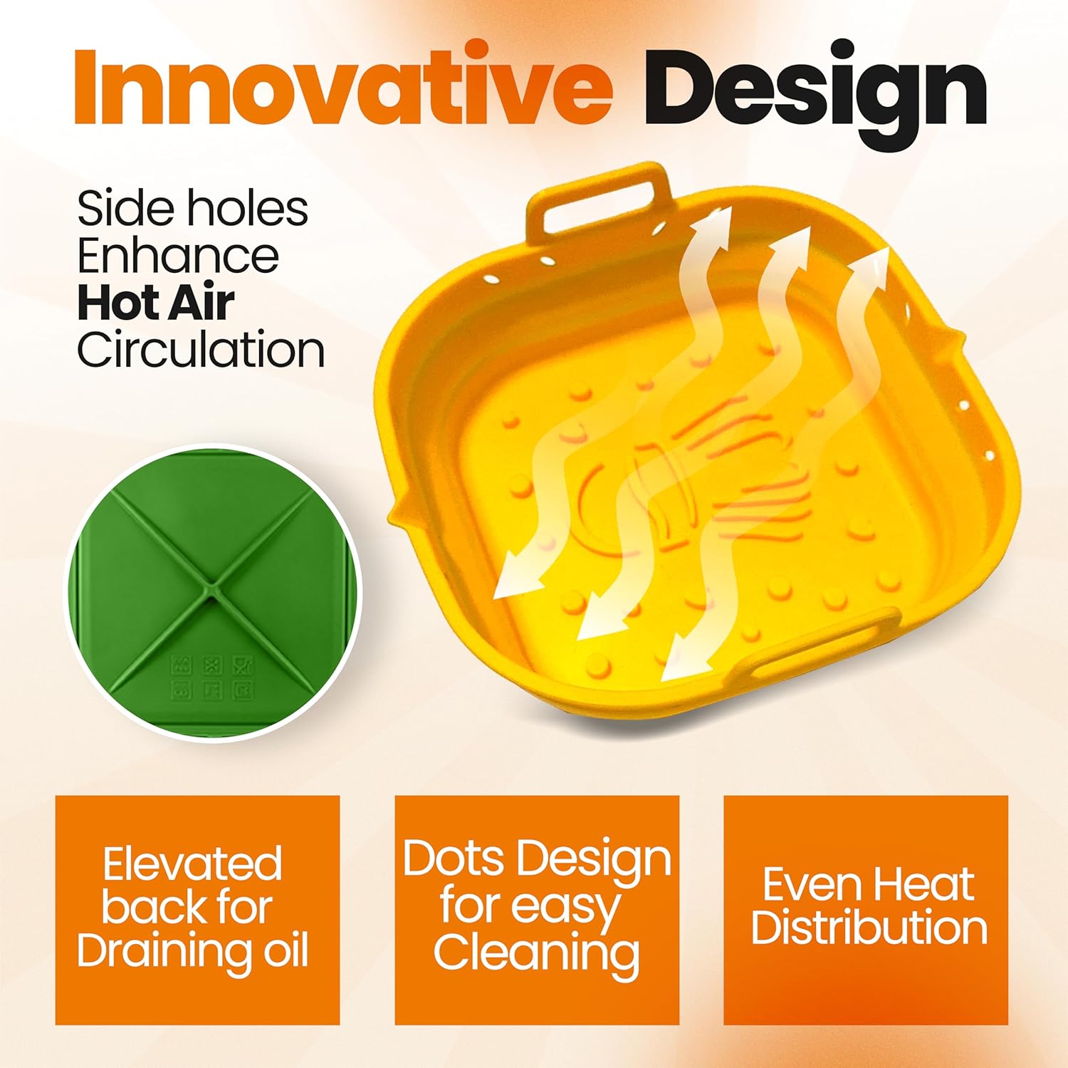Upgrade Your Cooking Experience with Our Innovative Platinum Silicone Air Fryer Liner! Tired of boring, flat air fryer liners that don’t deliver consistent results? Meet our Platinum Silicone 5.8 QT to 8 QT Air Fryer Liner – a game-changer in kitchen convenience and performance! Designed with a unique Chef Hat texture and raised dots, this air fryer basket isn’t just stylish; it’s engineered to improve heat circulation for faster, crispier, and more evenly cooked meals. Whether you’re air-frying, baking, or steaming, this air fryer liners reusable is your ultimate kitchen companion.