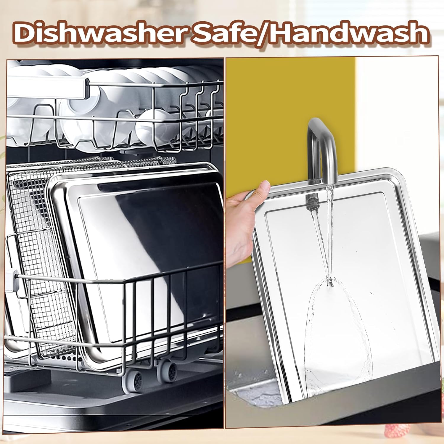 【Dishwasher-Safe & Quick Cleanup】After use, simply pop the air fryer tray for oven and basket into the dishwasher or hand-wash with warm soapy water. For stubborn residue, a quick soak does the trick. For best results, lightly spray the basket with oil before cooking to enhance non-stick performance.
