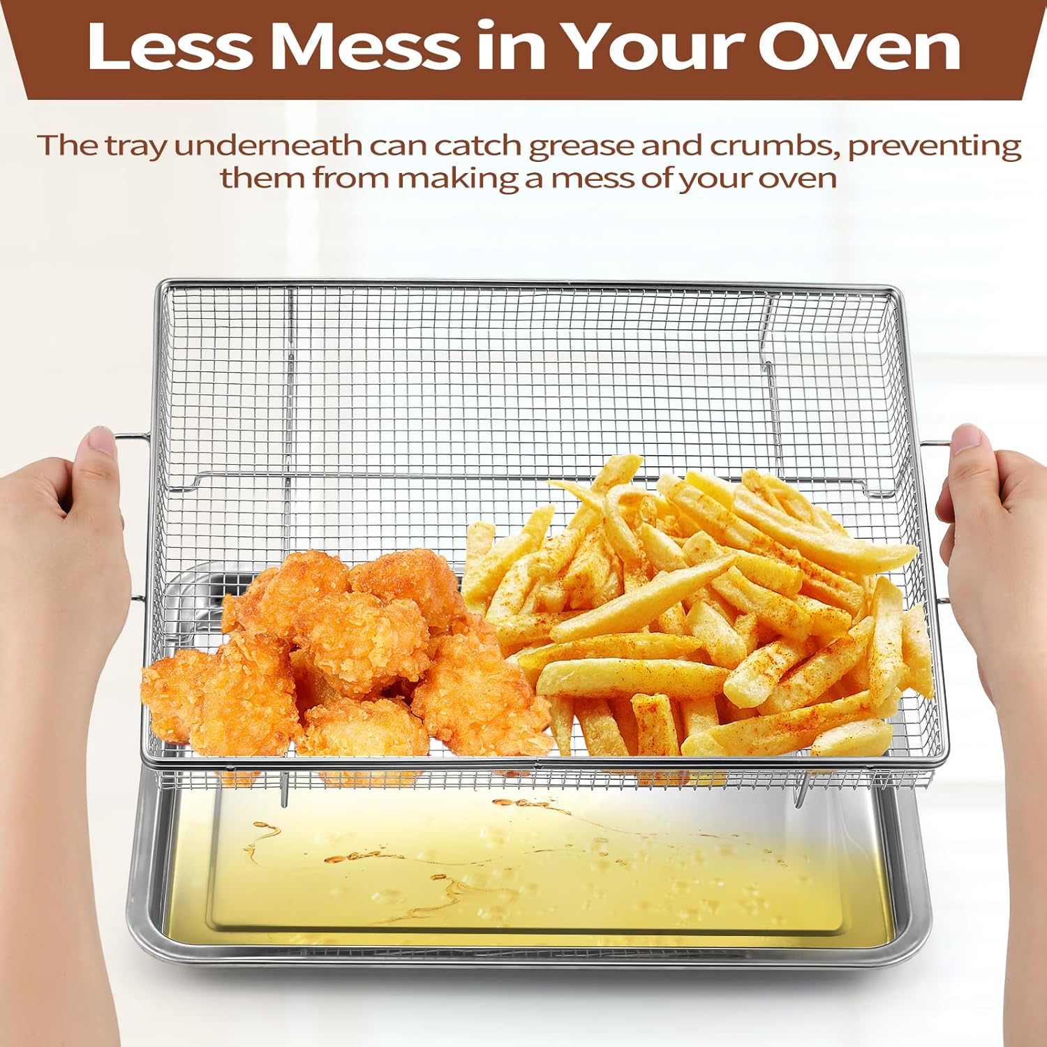 【Effortless Operation & Multi-Use Convenience】Just load the oven air fryer basket and tray, set your oven’s time/temp, and enjoy hands-off cooking. The tray catches grease and crumbs, keeping your oven spotless. Pro tip: Line it with foil for easy cleanup or use it as a stylish serving platter for parties!