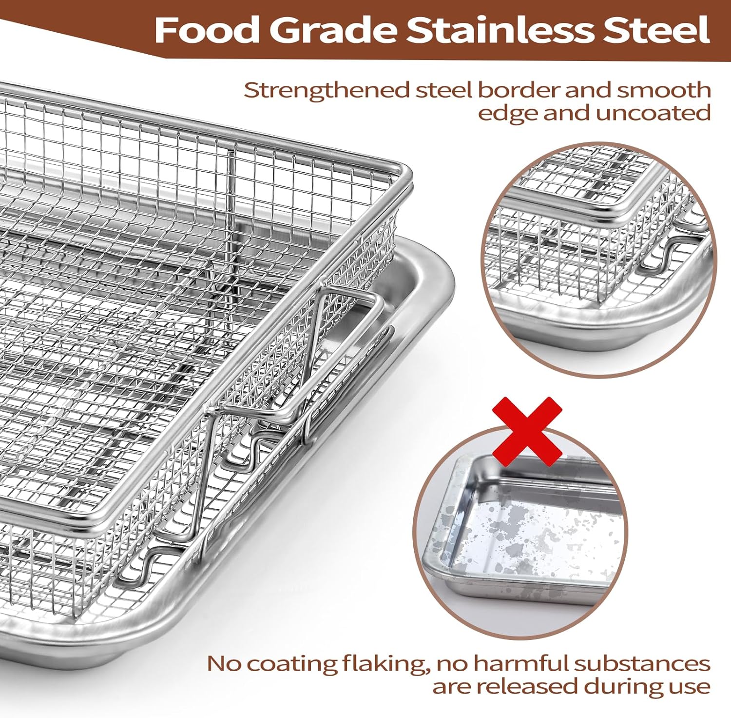 【Premium Food-Grade Stainless Steel Construction】Crafted from thickened, non-toxic stainless steel, our air fryer pan and basket withstand temps up to 450°F without warping or releasing harmful chemicals. The non-stick coating ensures effortless food release, making every meal as safe as it is delicious.