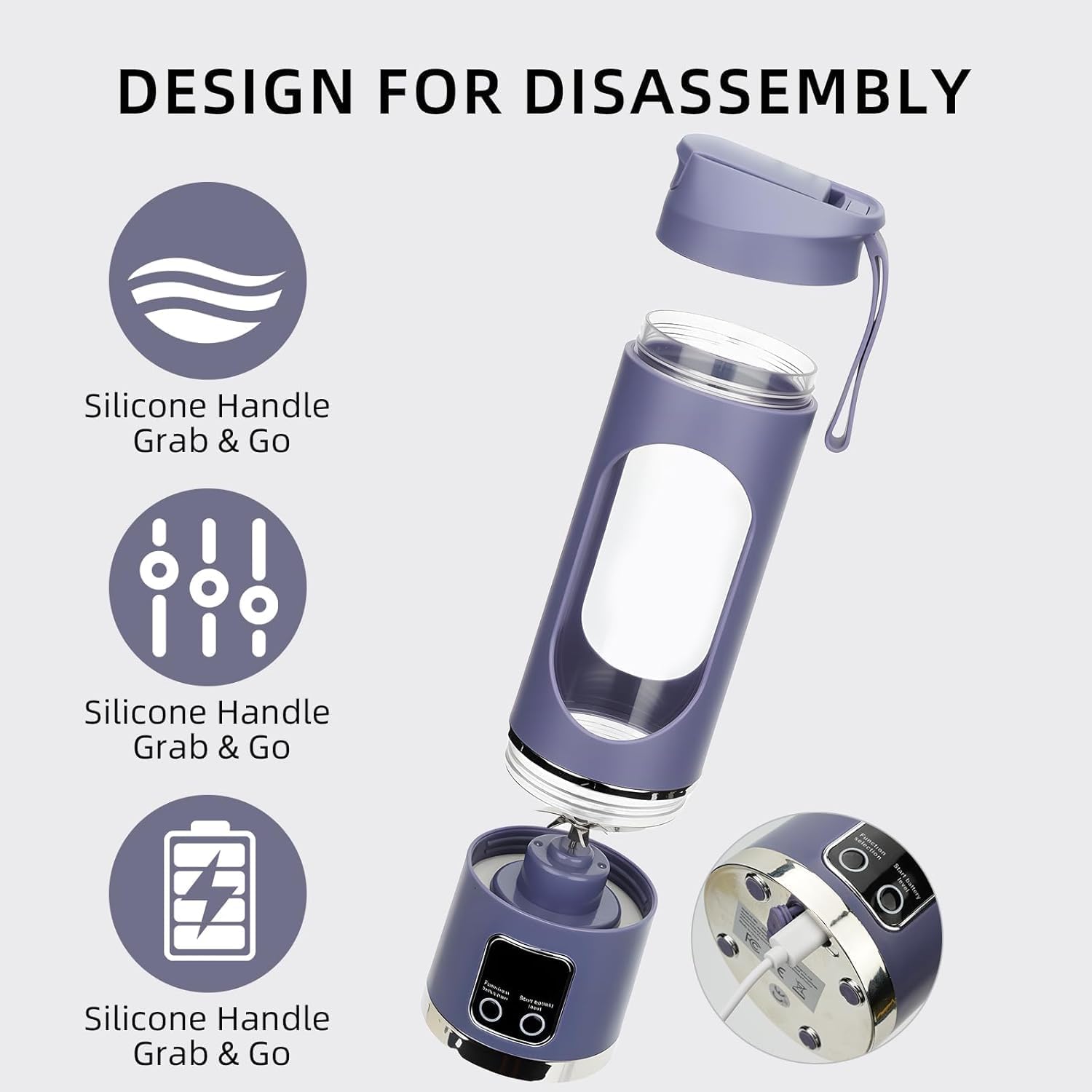 450ML Leakproof Cup & Easy Maintenance:Blend directly in the generous 450ML BPA-free cup and seal it with the leakproof lid for spill-free travel. Both the cup and the durable 12-blade assembly are easily detachable and top-rack dishwasher safe, making cleanup a breeze.