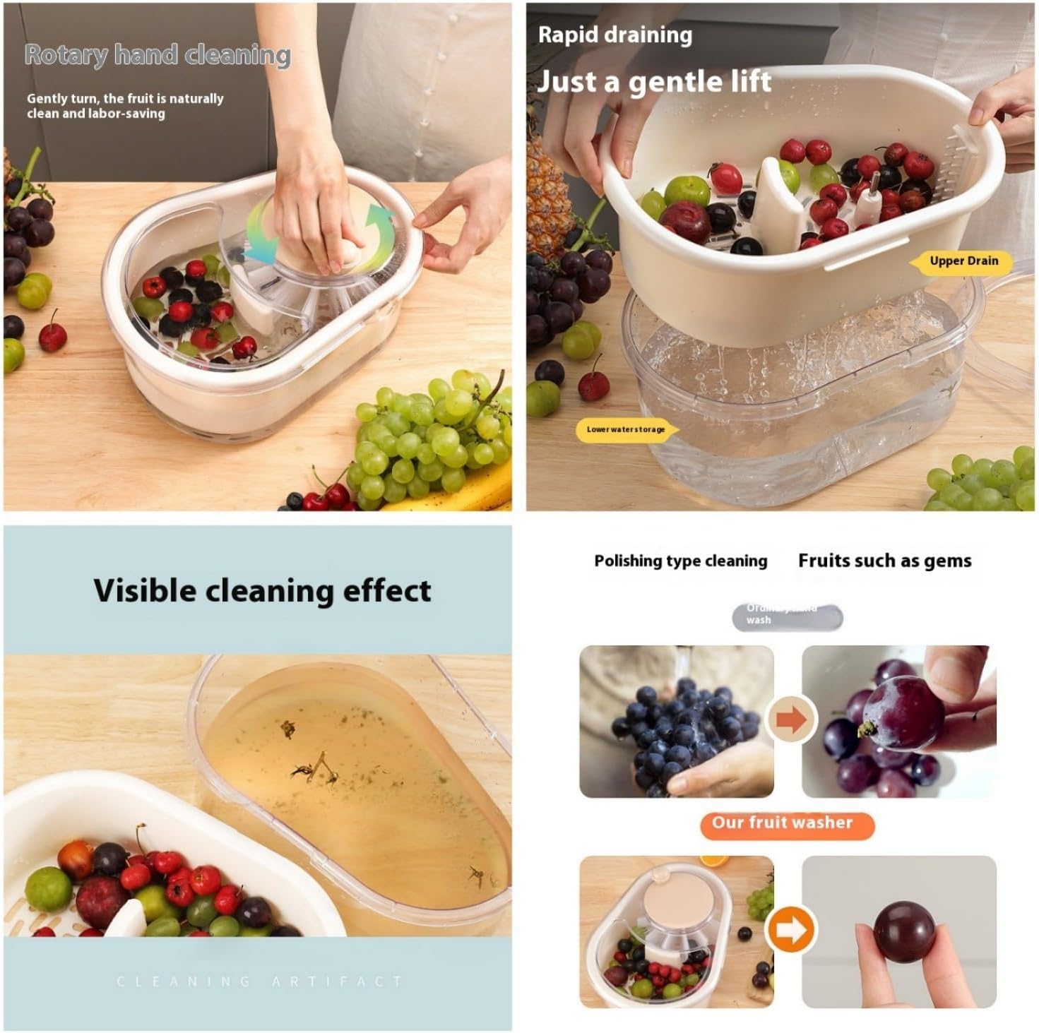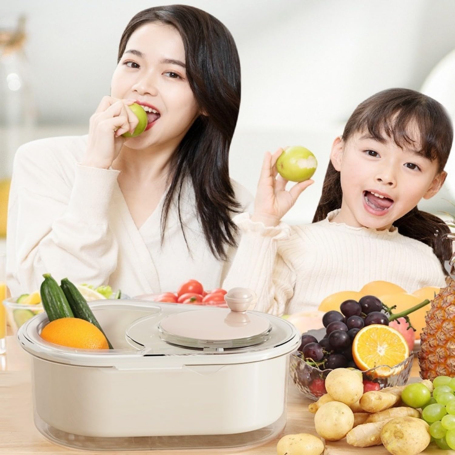 .360 ° all-round cleaning: With a unique double-layer design and built-in cleaning brush, it easily removes surface dirt and pesticide residues from fruits and vegetables, safeguarding the health of family members