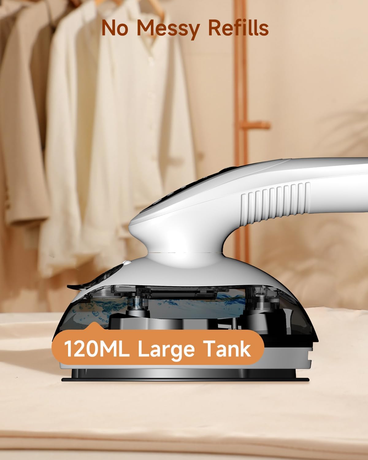 ✅ 120ML XL TANK: The 120ml large tank makes this portable iron be able to create 8-10 mins continuous steam, which support 5~6 full-size tees per fill. There’s no messy refills when you ironing clothes, making the ironing job much easier and faster.