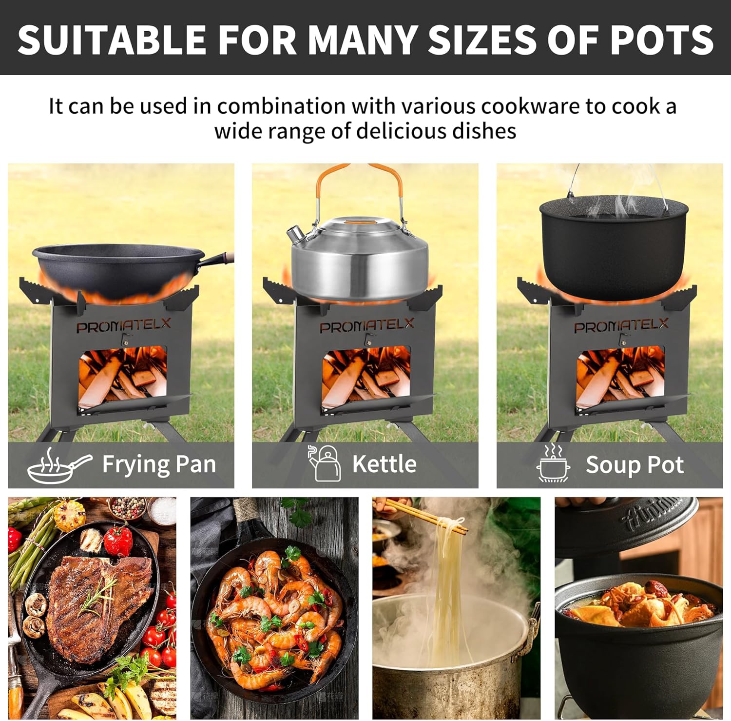 This wood-burning stove allows you to easily find fuel outdoors and use it to cook delicious meals.Enjoy cooking over campfire