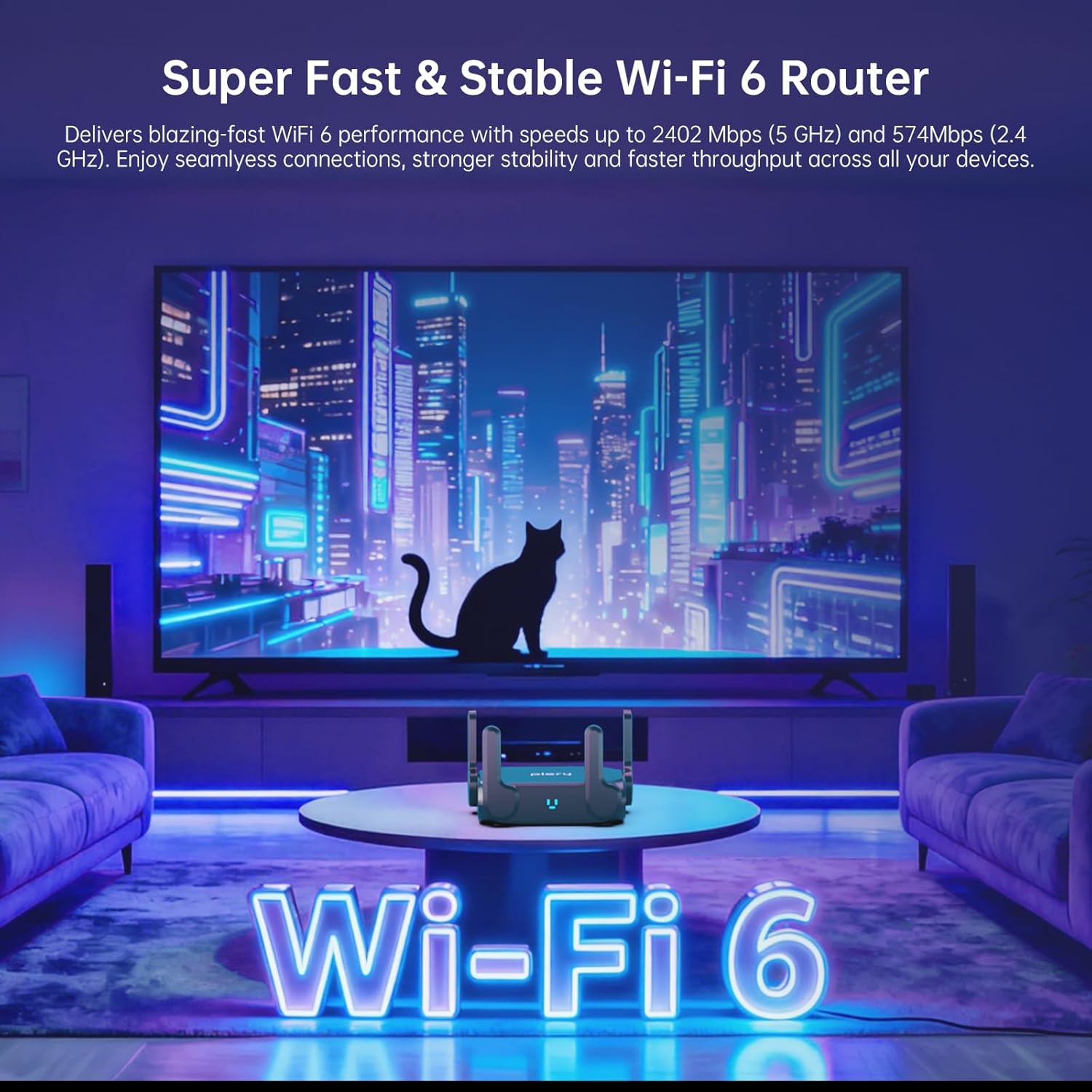 wifi 6 router dual band 2.4GHz 5GHz 3000Mbps high speed network router with OFDMA MO-MIMO technology portable wifi router for travel, business, home, camping, public wifi sharing with 4 antennas