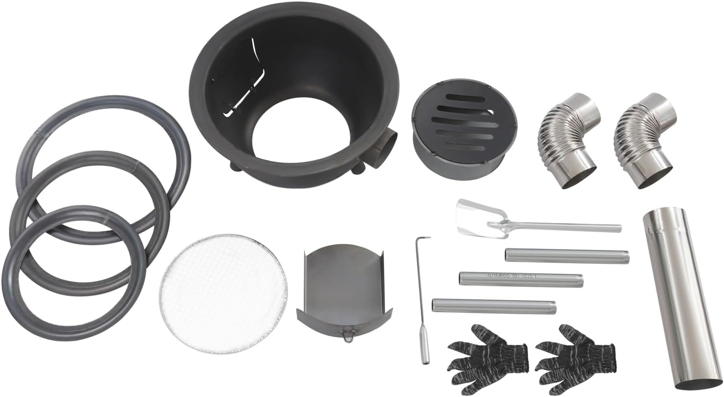 Thoughtful Design: We provide wok rings in three different sizes (16.93/14.96/12.99 inches), which makes it convenient to use various sizes and functions of cookware (10.63-19.69 inches) with this woodstove, such as seafood cooking pots, stockpots, woks, cast iron skillets, and pans to meet most cooking needs.