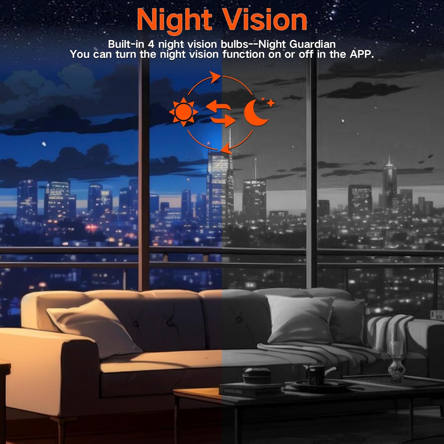 Night Vision: It has a built-in night vision lamp and can record at night. It needs to be connected to a 2.4/5GHz wireless network for normal operation.