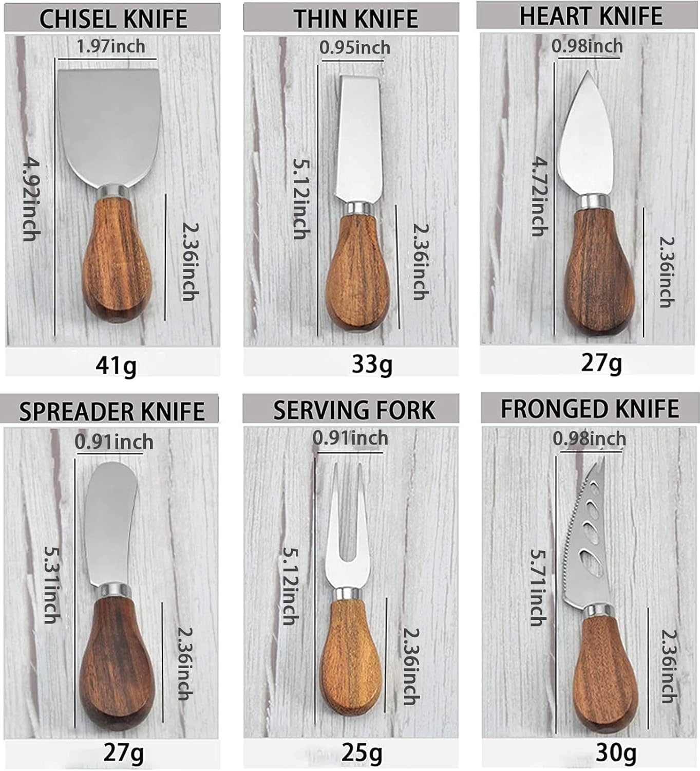Made from premium quality food grade stainless steel with acacia wood handle ,our cheese knife gift set looks impressively sturdy and are nicely designed, well-balanced, and built to last.