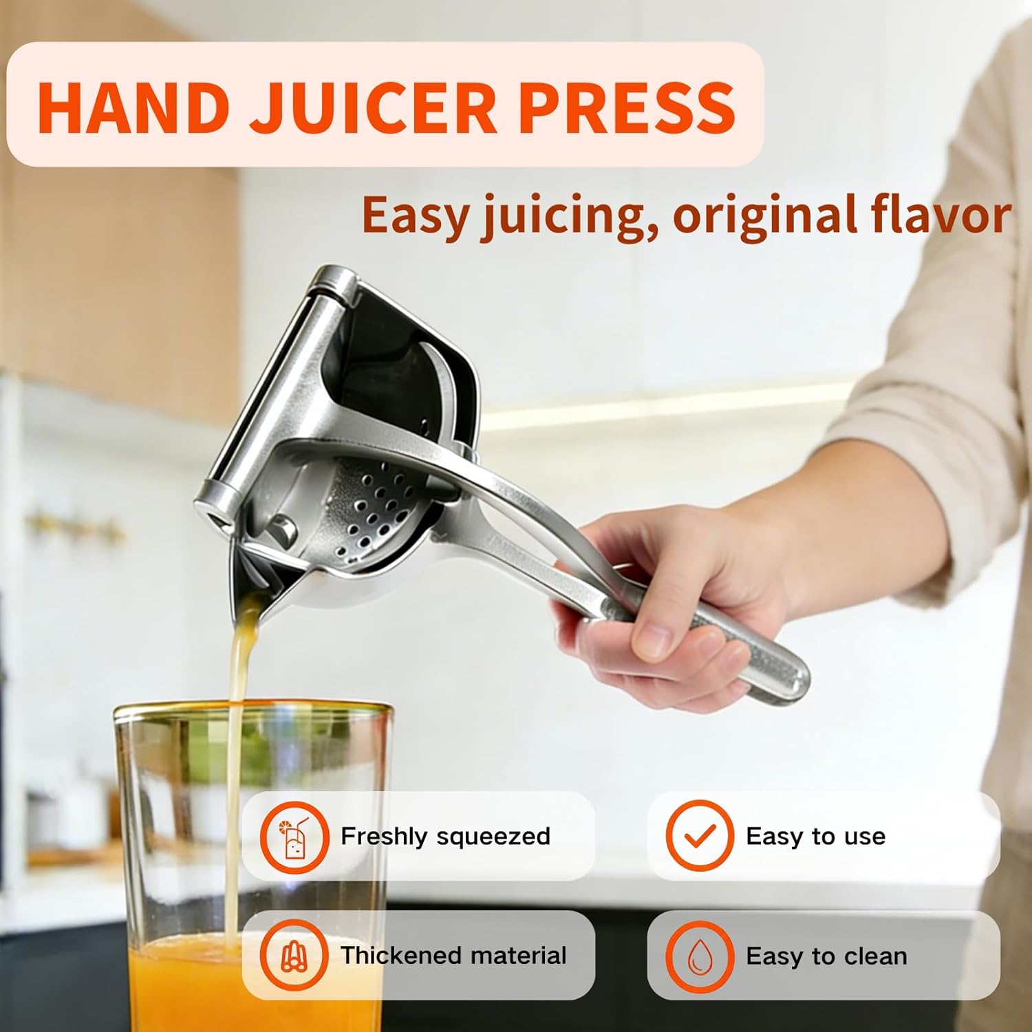 A perfectly sized hand juicer press can extract juice from lemons, limes, oranges, celery, and more. We can easily squeeze every drop of fruit with the juicer, making a delicious glass of juice in just a few seconds.