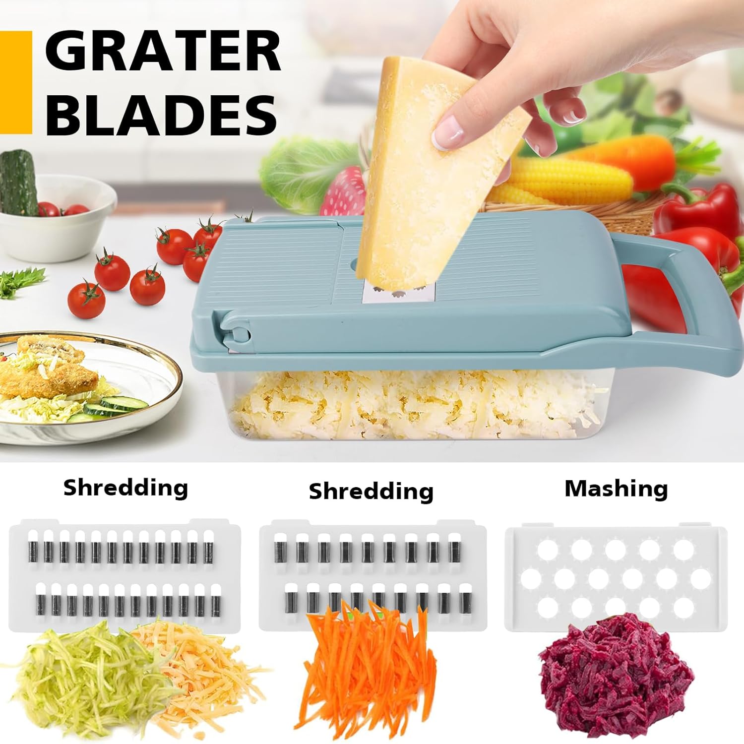 š„ćSUPERIOR QUALITYć- Vegetable chopper multifunctional slicer is made with premium materials like grade 420 stainless steel blades and food-grade materials. The sharp stainless steel blades can quickly chop most types of vegetables and fruits for all your slicing, dicing, grating & shredding needs. The functional kitchen gadget is a must-have tool for cooking enthusiasts.