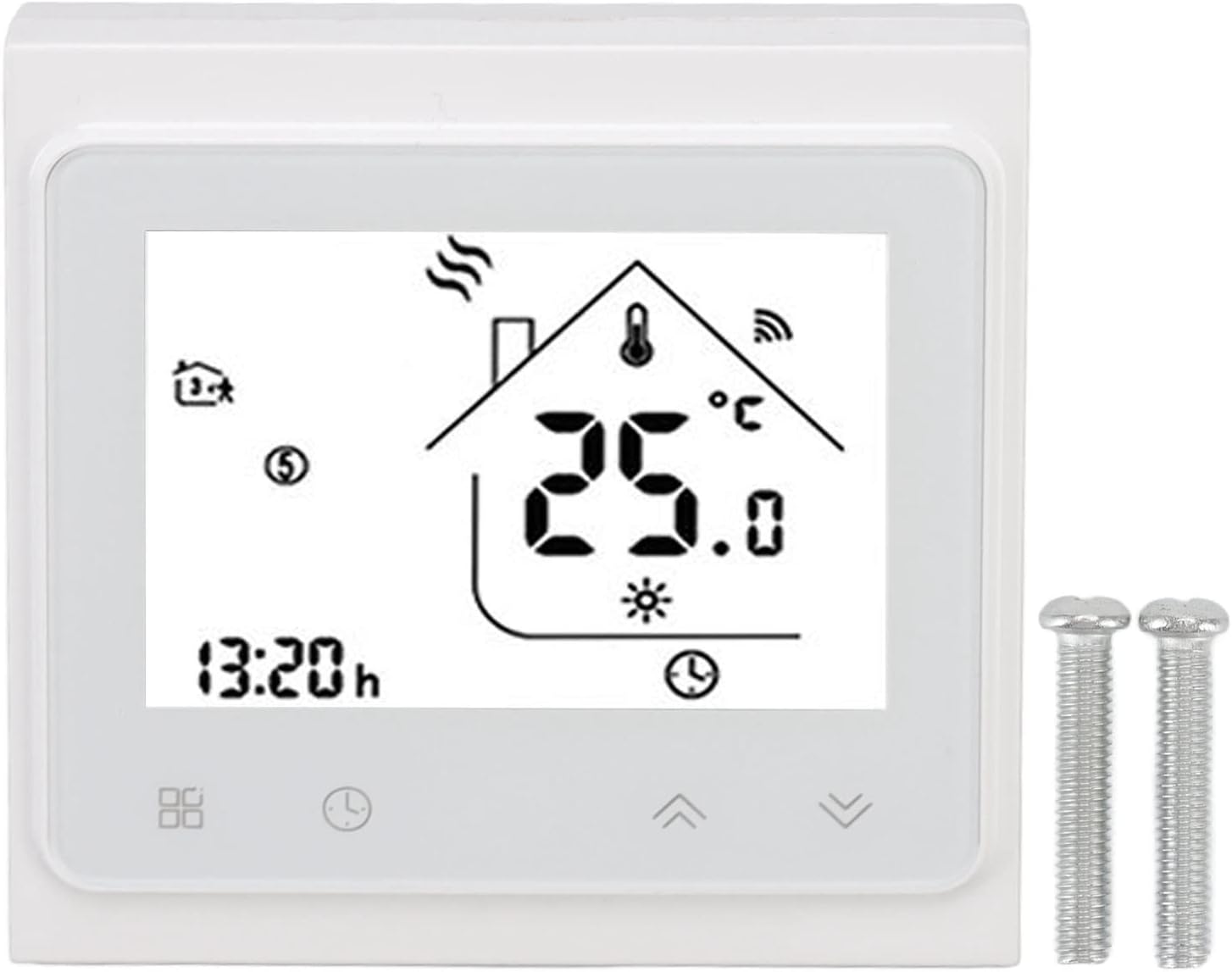 This thermostat offers a large 4-inch backlit display with glow-in-the-dark functionality for easy reading in any light. With adjustable heating and cooling cycles, battery or 24V power options, and color-coded terminals, it simplifies installation. Its universal sub-base fits gas or electric systems, and a convenient battery compartment, 5-minute compressor delay option, and 5-year warranty add extra reliability.