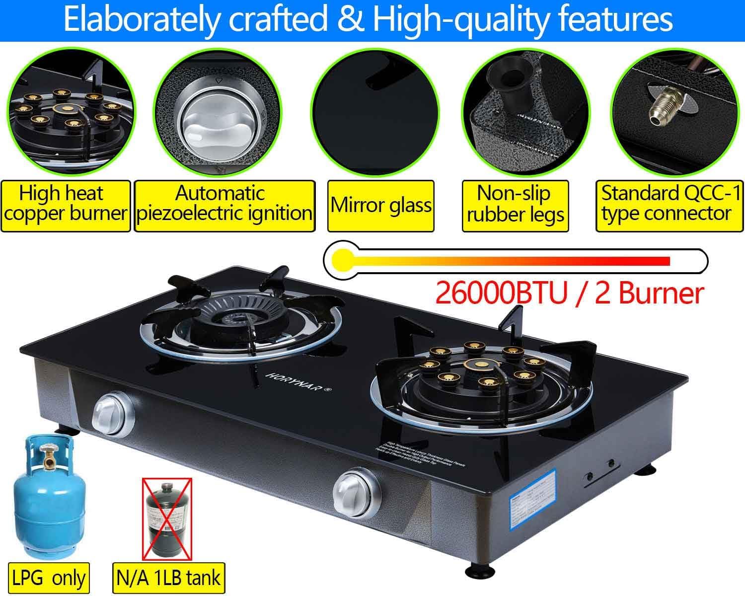 CSA HOSE & VERY MONEY SAVING – Horynar propane stove 2 burner with 5FT propane adapter Hose. CSA group. Safe and secure, Very money saving