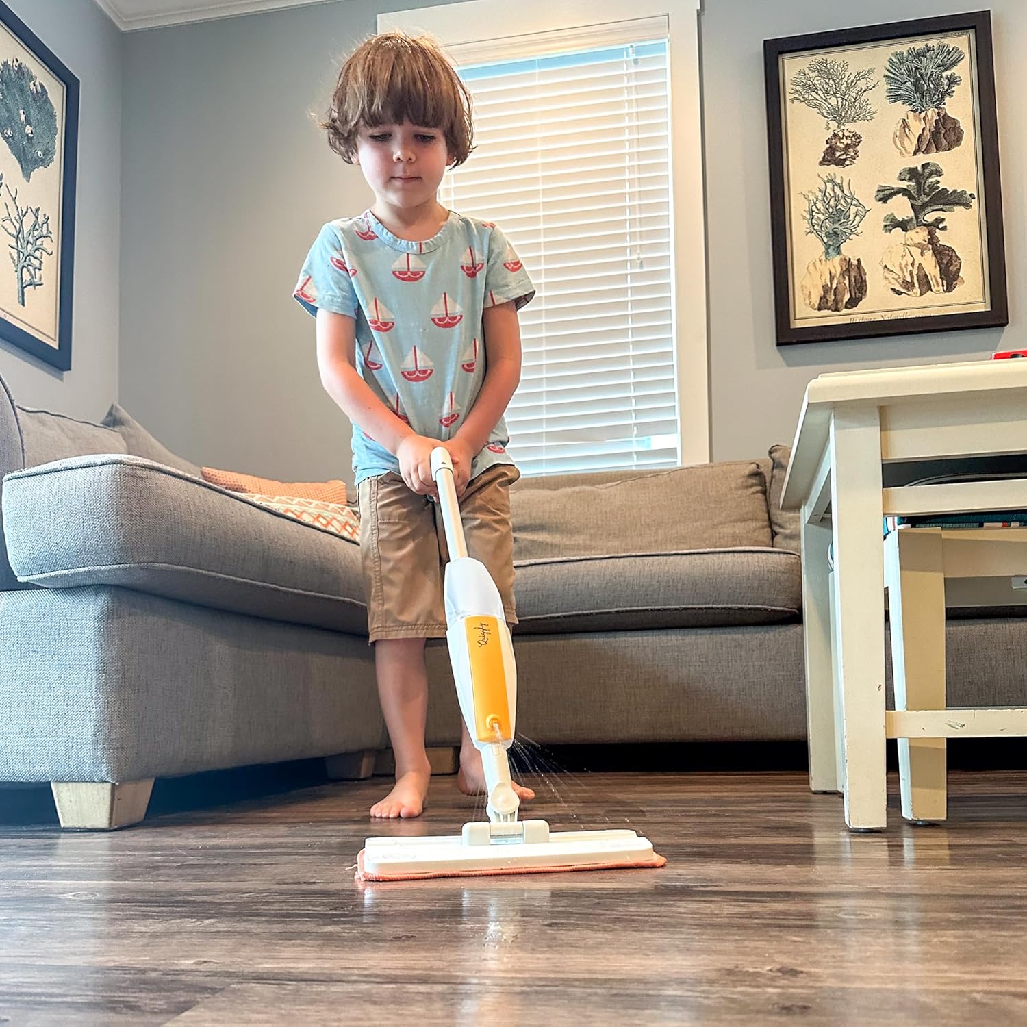 Disposable mop cloths: Our toddler spray mop works with disposable mop cloths like swiffer brand (not included), promoting hygiene and ease of use. The mop kids real water cleaning supplies for kids are perfect for play and learning.