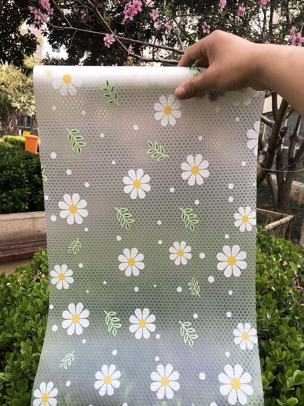 Refrigerator Liners Non Slip Shelf Liner for Kitchen Cabinets Non-Adhesive Drawer Liners for Dresser Waterproof Liner Easy to Clean, Cut and Lay Flat-Cute Daisy Pattern 11.8″x118″
