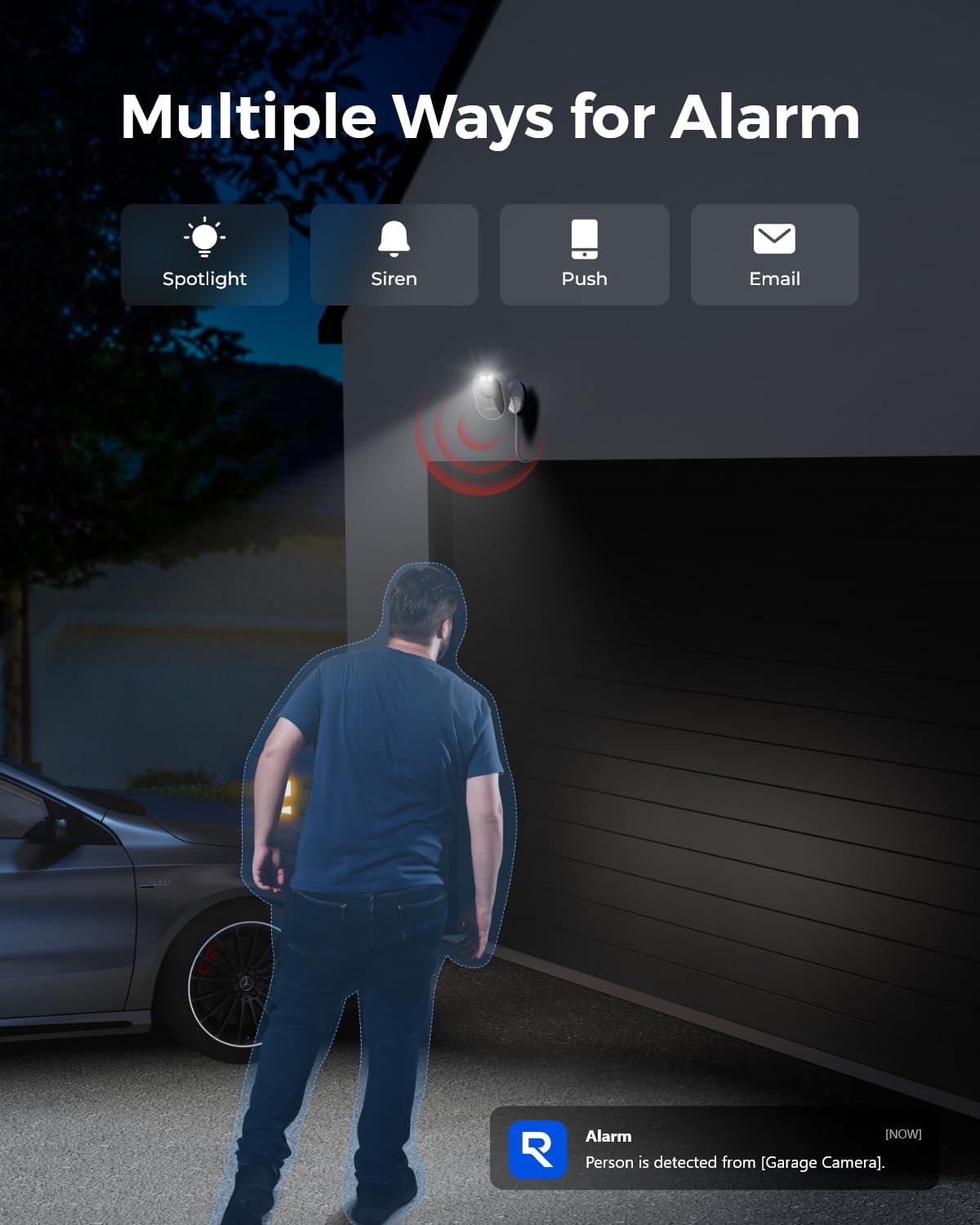 AI DETECTION & INTEGRATED ALARM: Integrating your smart cameras with the Reolink Home Hub, you’ll get instant siren alerts from the hub when any of the connected camera detects a person, vehicle, or animal. Opt for 11 preset ringtones or 5 custom voices as needed.