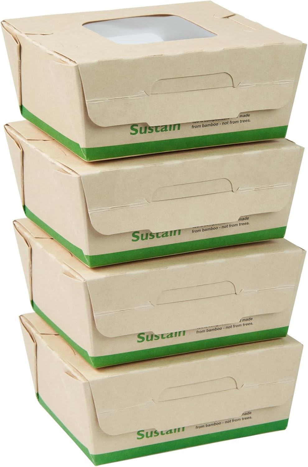 Restaurantware-Sustain 12 Ounce Sturdy Paper Take Out Boxes, 200 Disposable Take Out Food Containers – With PLA lining, Two Clear PLA Windows, Bamboo Paper Containers, Compostable, Greaseproof