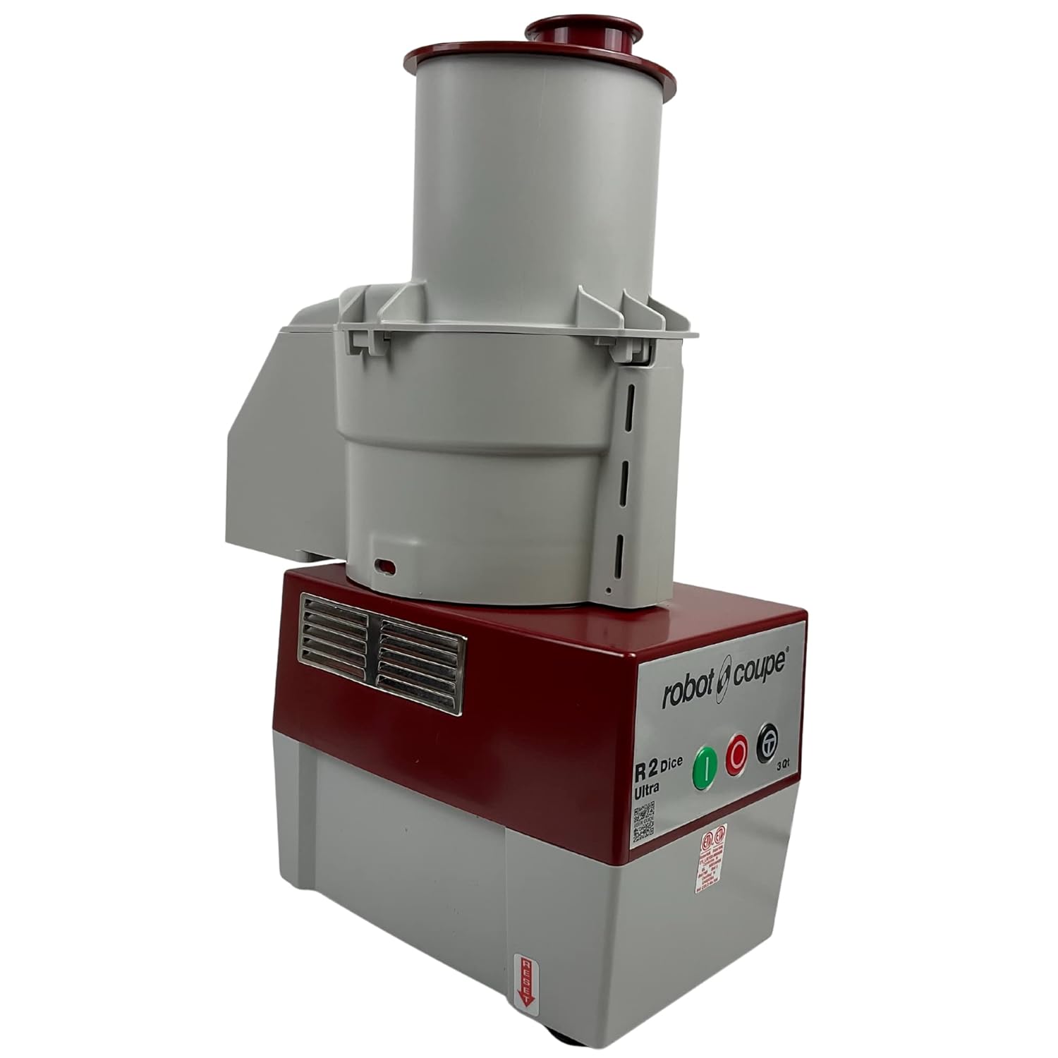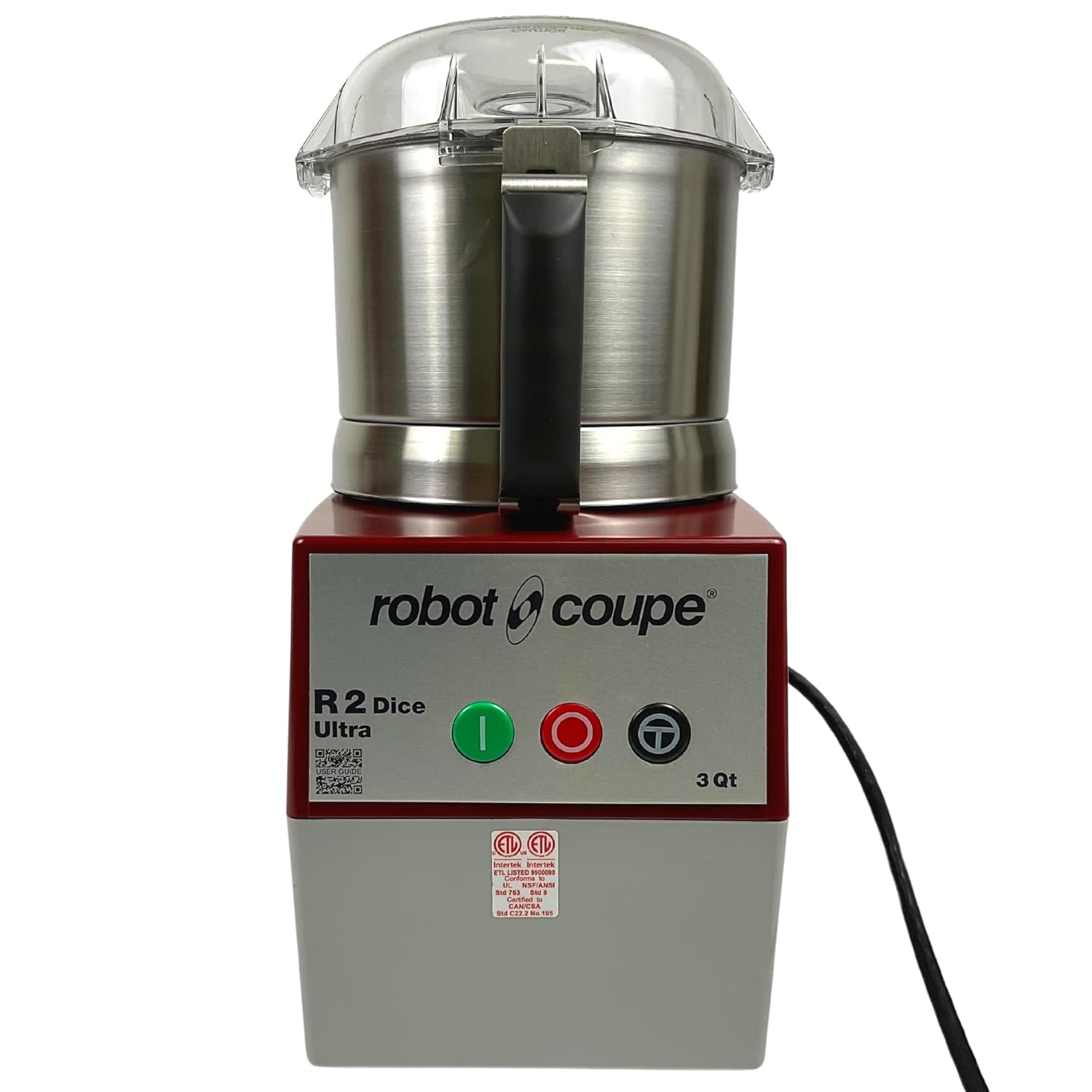 Manually prepping ingredients takes a lot of time and poses a safety risk, exposing your employees to sharp knives that can easily cause injury. Robot Coupe’s R2UDICE previously know as the R2 Dice Ultra combination food processor eliminates both problems by giving you near-limitless prep options, and by doing that prep work in a fraction of the time it takes to do manually. And since it comes with both a continuous feed head and a batch bowl, you can easily adapt to any task! This unit has a three-quart stock pot-shaped cutter bowl with a handle and S-shaped blade that cuts, blends, mixes, and purées. Its vegetable attachment is used in combination with its included slicing and grating discs to prepare all sorts of vegetable garnishes, toppings, and ingredients. The commercial food processor’s direct drive, fan-cooled, 2-horsepower motor can handle dense mixtures without the risk of burning out. Item Details: Operates at 1725 RPM Processes up to 2.2 lb. per batch Prepares up to 850 servings of products in as few as 3 hours 3-qt. stock pot-shaped cutter bowl with an ergonomic handle S-shaped blade chops, cuts, blends and purées Powerful 2 HP motor with direct drive is fan-cooled to prevent overheating Attachments are quickly removed for easy cleaning Continuous feed vegetable prep bowl has 2 deep feed openings to accommodate a variety of vegetable shapes and sizes. Vegetable chute pushers allow users to safely direct products toward blades for consistent cuts See-thru lid lets users view products as they are processed to achieve desired results Includes 2 standard stainless steel processing plates Includes 2 mm grating disc, 4 mm slicing disc, and 10 mm dicing kit On/Off/Pulse switches provide fine control over product texture 120 V/60 HZ/1-ph, 13 A, NEMA 5-15P, cord and plug included Overall Dimensions: 9-1⁄8 in. W x 17 in. D x 20-3⁄4 in. H