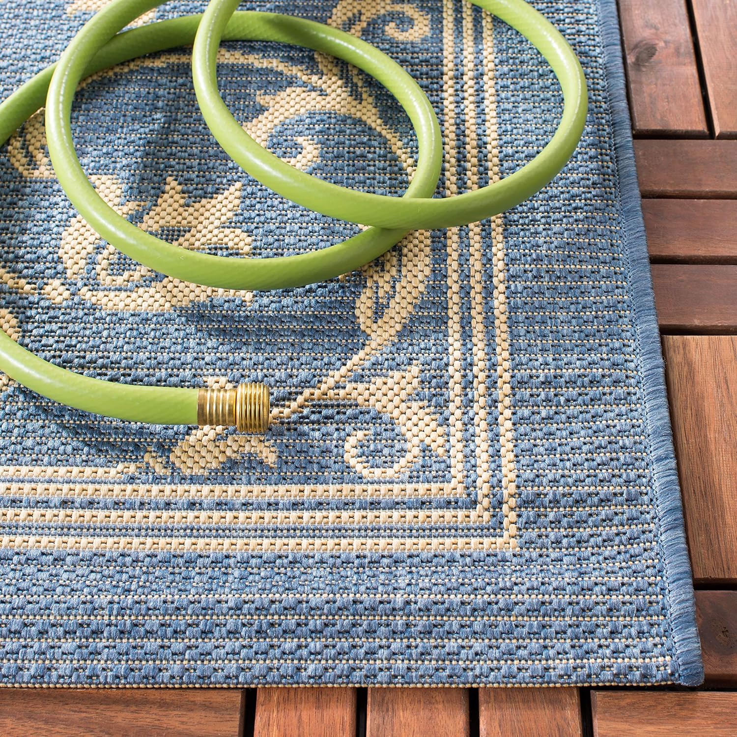 SAFAVIEH Courtyard Collection Area Rug – 7’1 Square, Blue & Natural, Scroll Design, Non-Shedding & Easy Care, Indoor/Outdoor & Washable-Ideal for Patio, Backyard, Mudroom (CY2098-3103)
