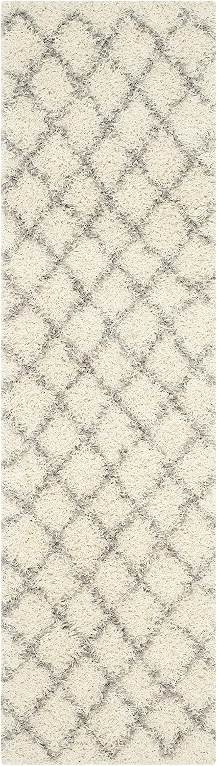 SAFAVIEH Dallas Shag Collection Runner Rug – 2’3″ x 6′, Ivory & Grey, Trellis Design, Non-Shedding & Easy Care, 1.5-inch Thick Ideal for High Traffic Areas in Living Room, Bedroom (SGD258F)