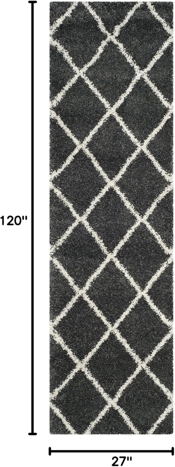 SAFAVIEH Hudson Shag Collection Runner Rug – 2’3″ x 10′, Dark Grey & Ivory, Modern Trellis Design, Non-Shedding & Easy Care, 2-inch Thick Ideal for High Traffic Areas in Living Room, Bedroom (SGH281G)